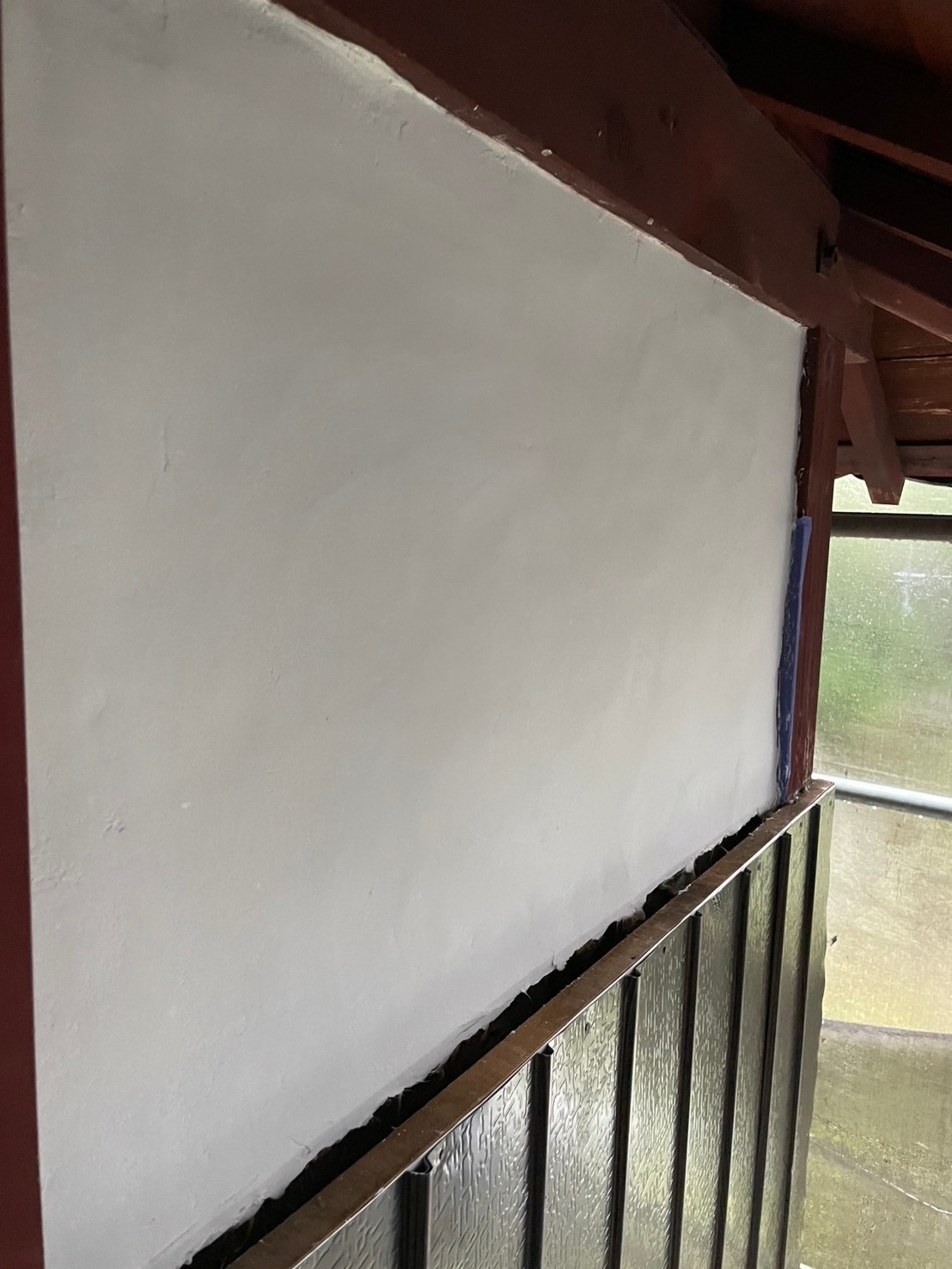 今日の午前中は引き続き破損部の白壁漆喰工事を工務と一緒に仕上げました。やれやれでした^^これで役物板金の仕舞いが出来ます。引き続き宜しくお願いします。またアップします。