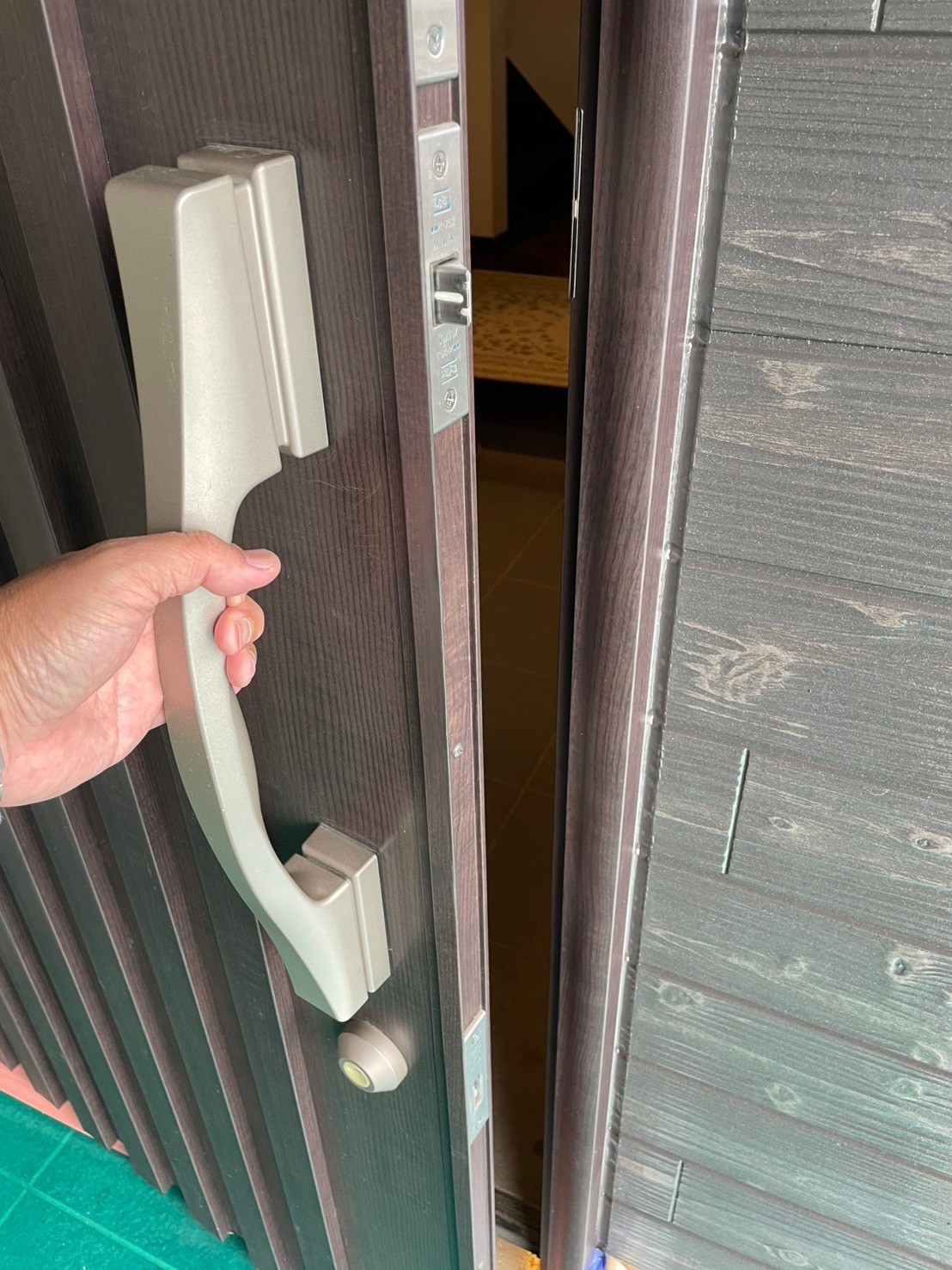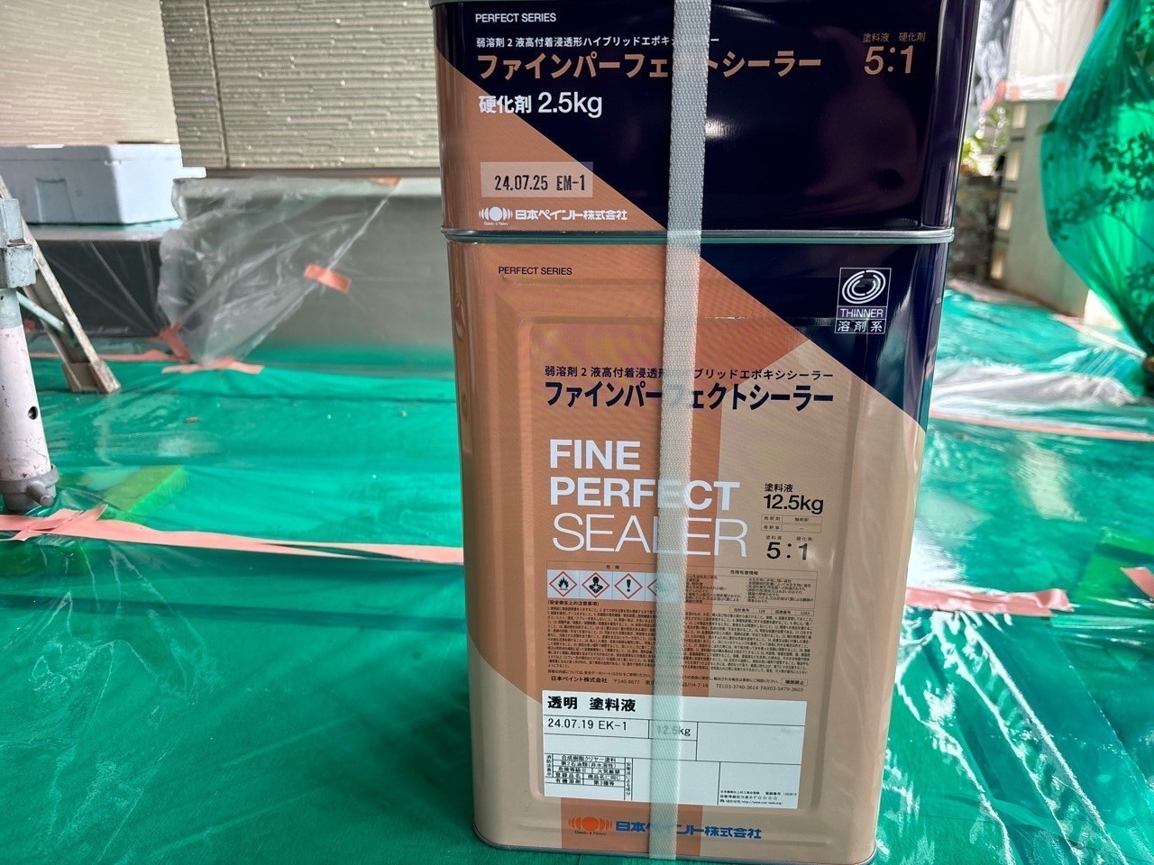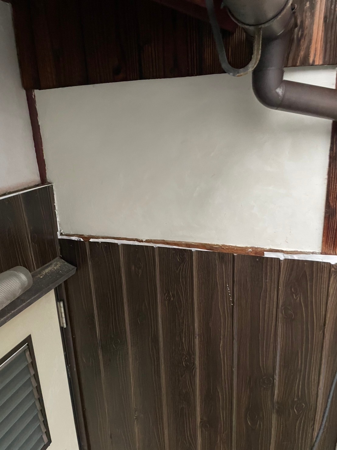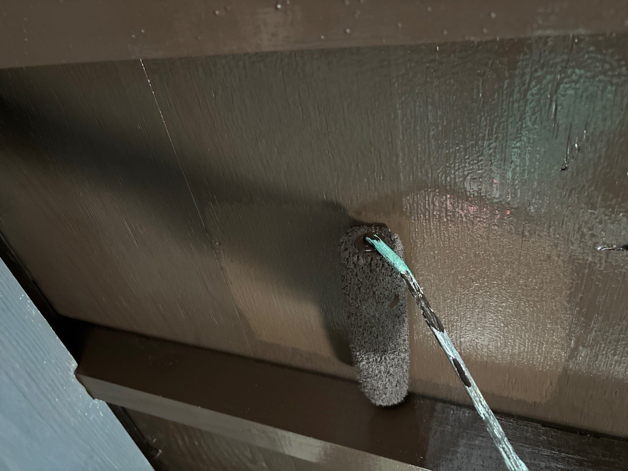 今日の天気は雨降りでしたが雨のかからないガレージの中の木部の塗装等をしました。裏側が川なので苔がひどい面がありましたので強力防かび剤をメーカーに依頼して入れて頂きました。それと玄関ドアのシートが当たり傷でめくれてましたのでリペア工事をしました。何処が破損していたのか分からないくらい綺麗な仕上がりになりましたね。引き続き宜しくお願いします。またアップします。