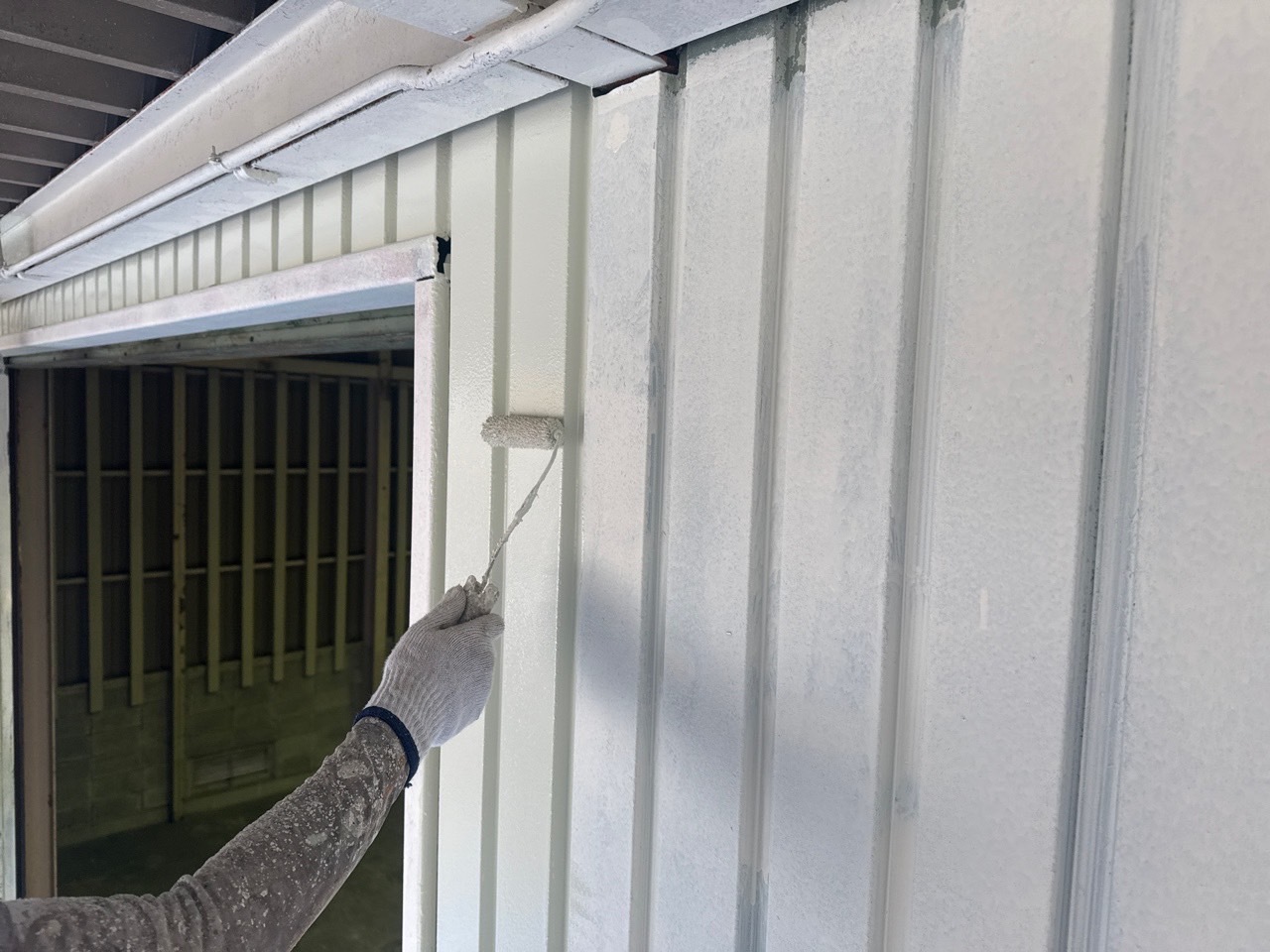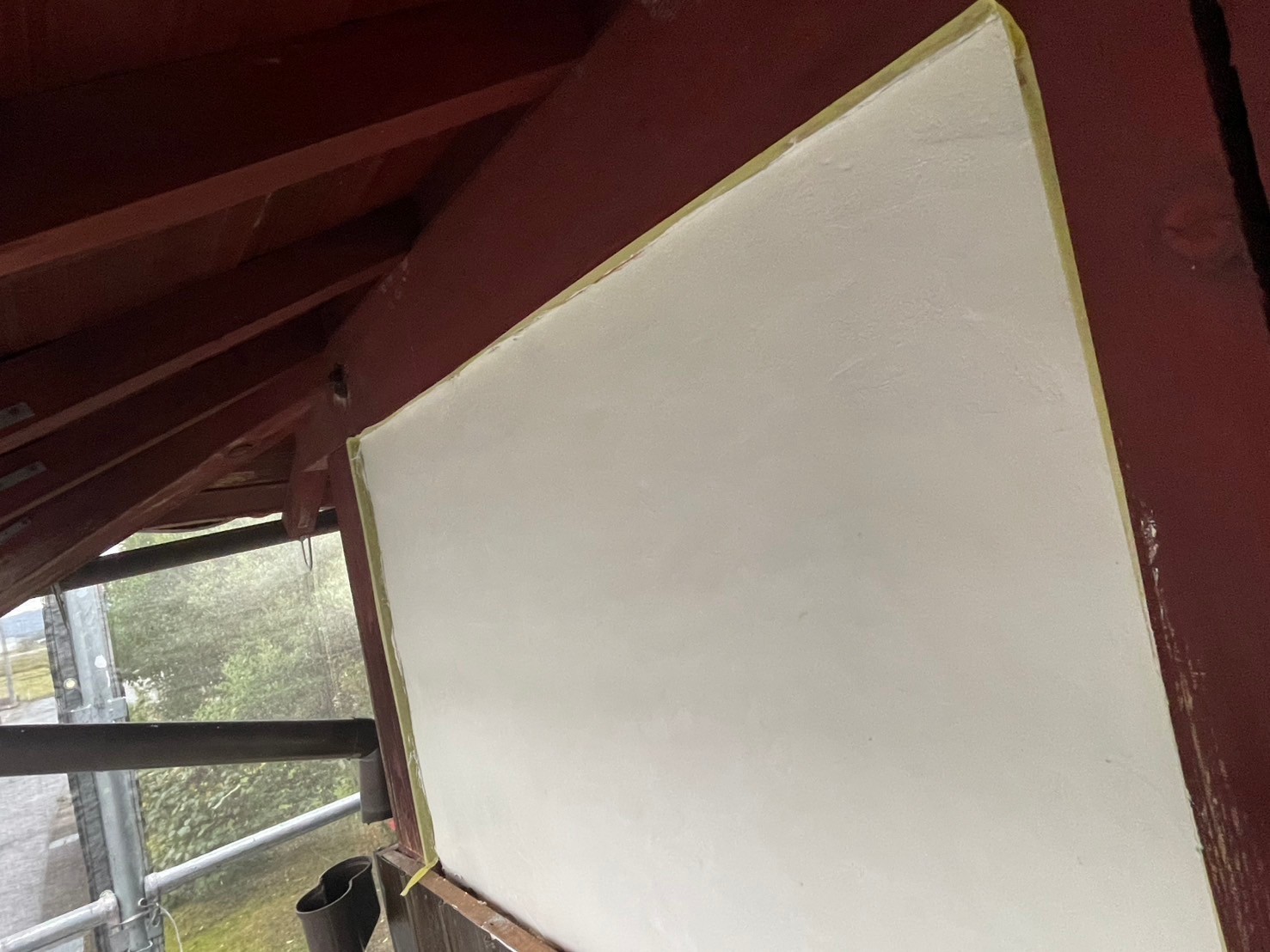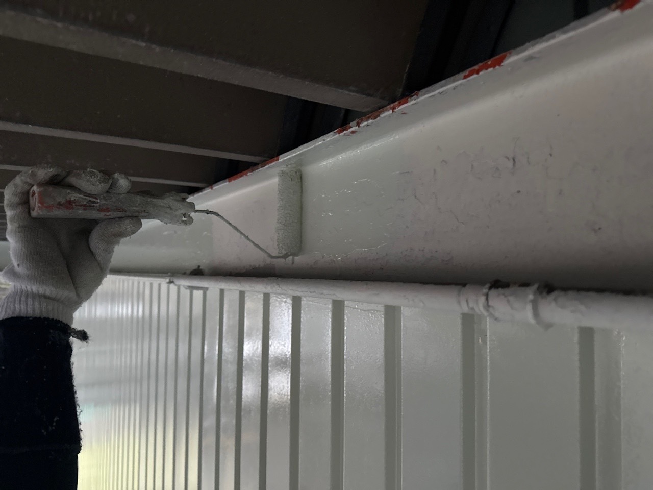 今日も天気が悪かったので昼からは雨のない庇面の塗装工事を進めました。明日も雨でも庇下を優先的に完成させて行きます。またアップします。