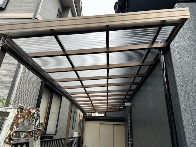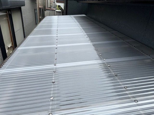Sさま邸の波板の復旧工事完了しました。完成写真もアップします。人気の色番N-30で付帯部はシンプルに黒で仕上げました。本当に素敵な仕上がりですね。あとブロックを少し積んだら外構工事も完了です。引き続き宜しくお願いします。またアップします。