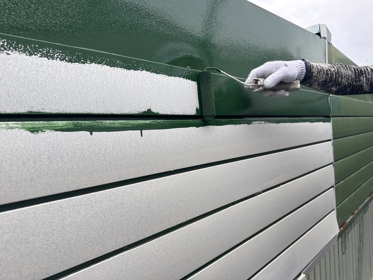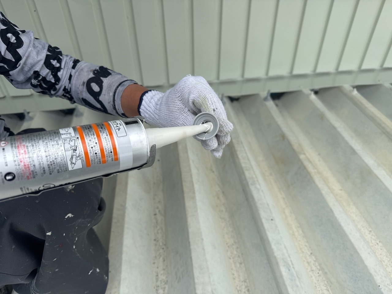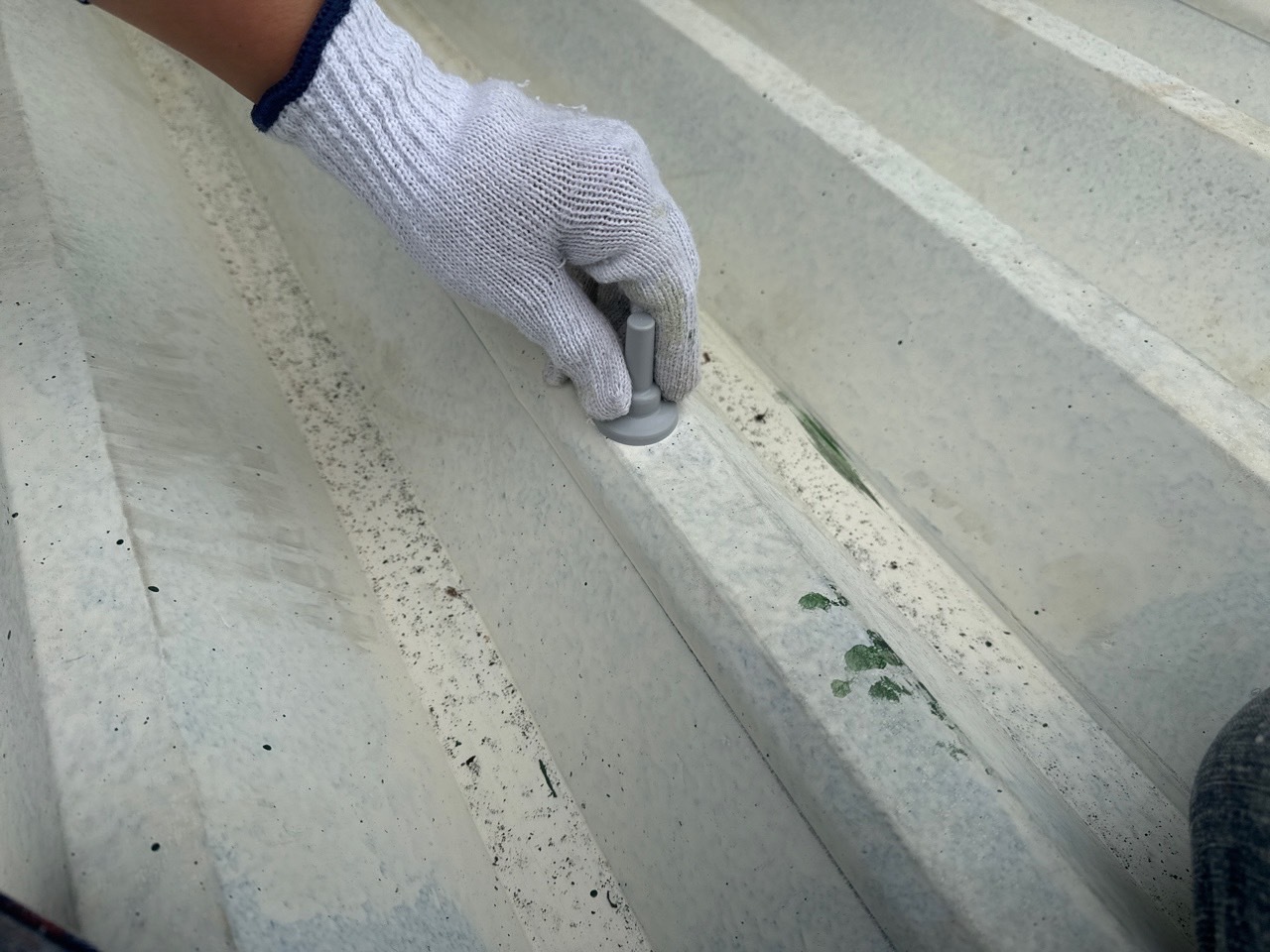 今日から錆止め終わった箇所は中塗りスタートしました。屋根はボルトキャップのサビヤーズ装着しております。引き続き宜しくお願いします。またアップします。
