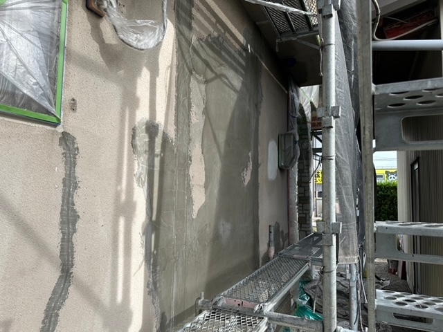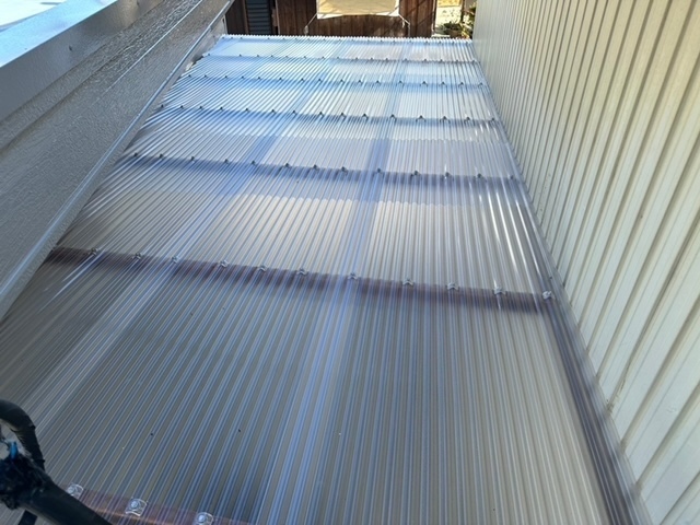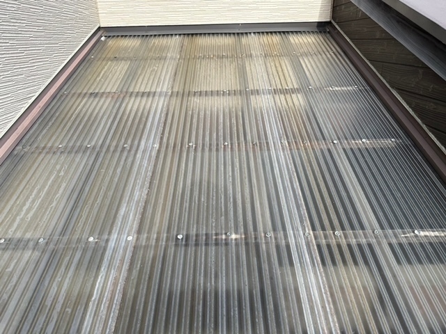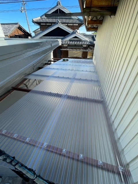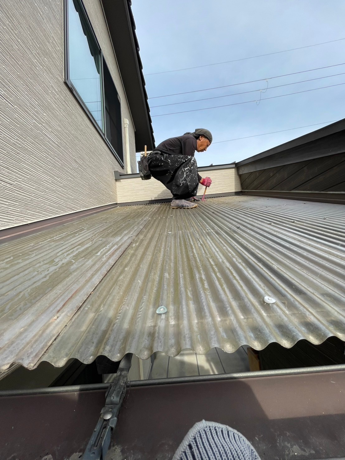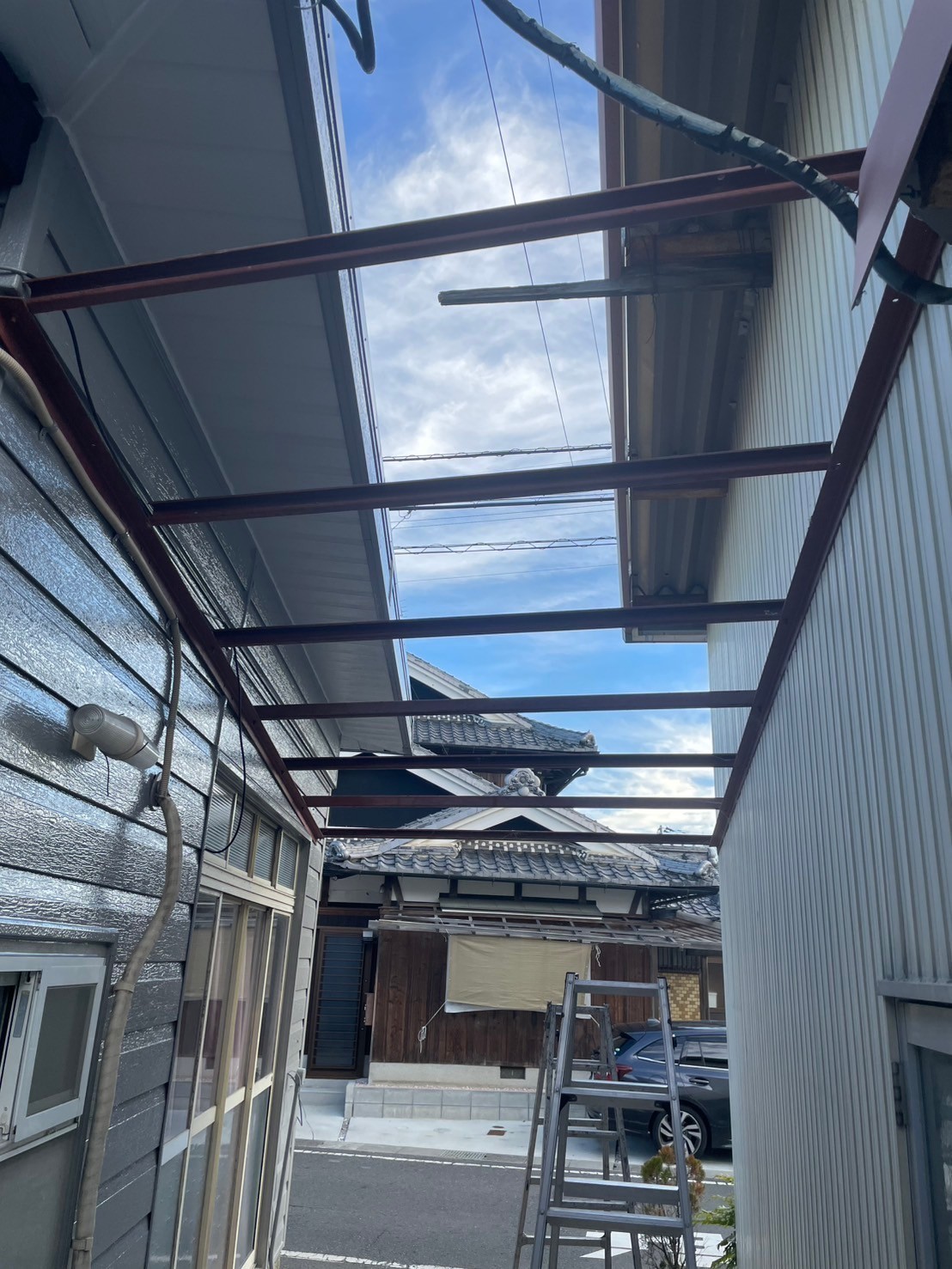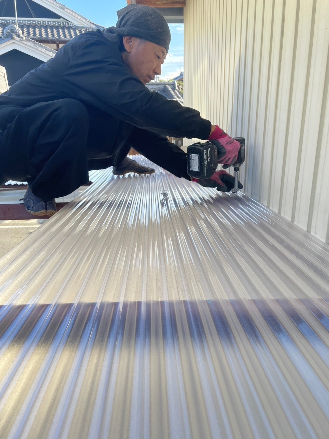 今日は足場解体後の波板の取付作業と大丈夫なんですが自分がめくれ後が気になったので軒天を左官下地して塗り直しました。綺麗になりましたね。ありがとうございました。