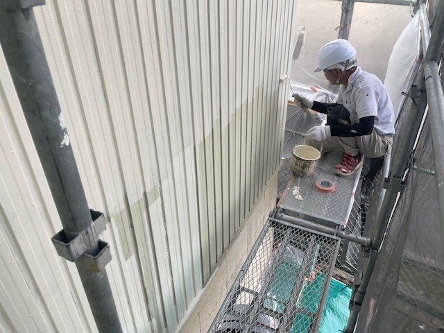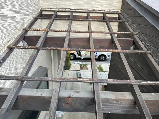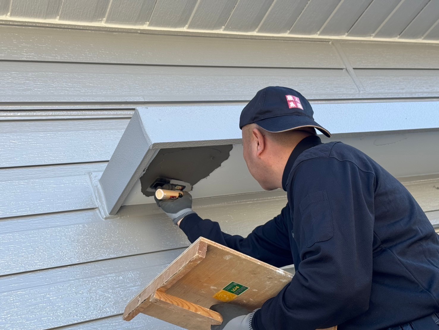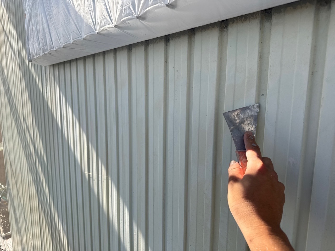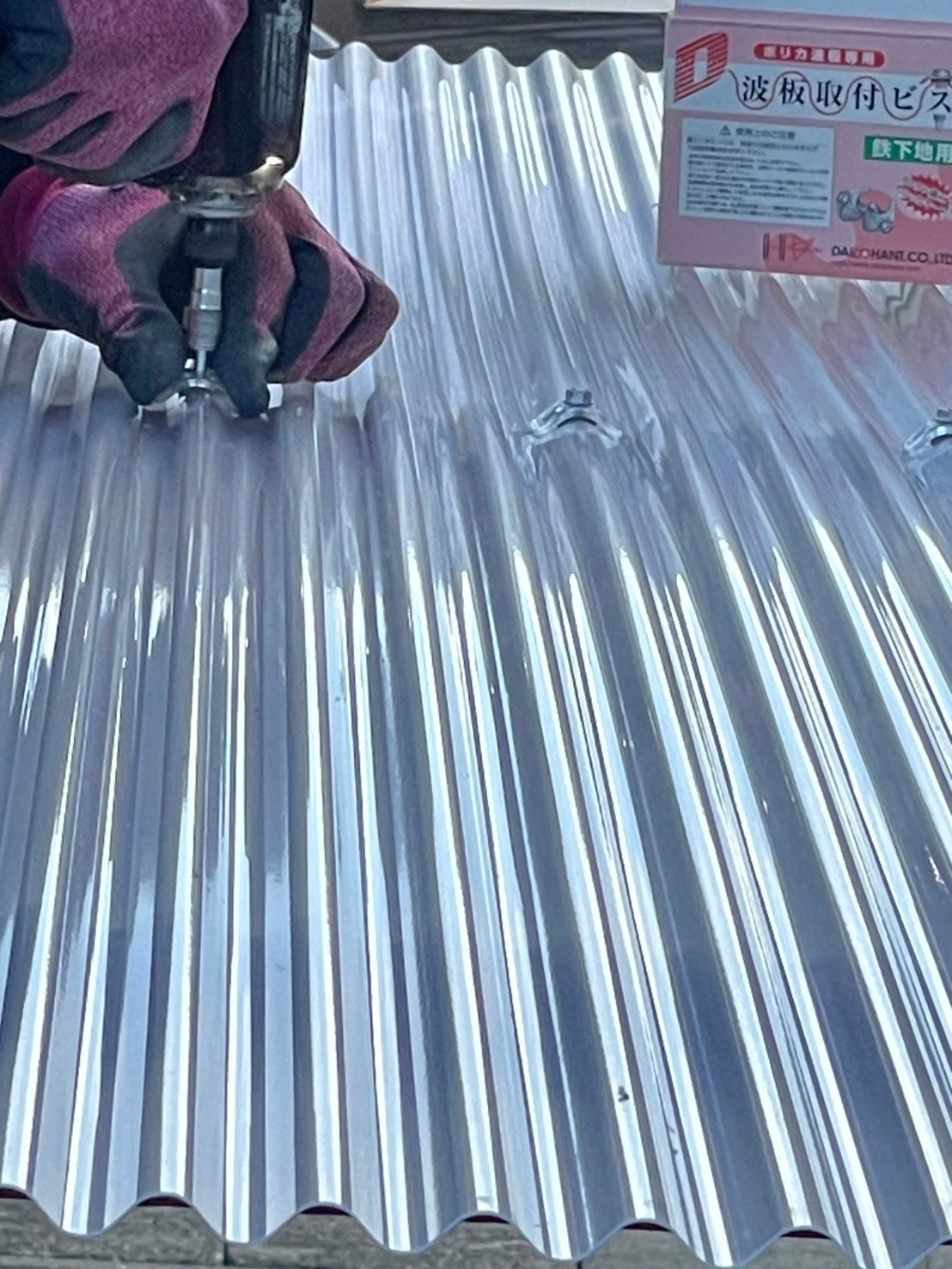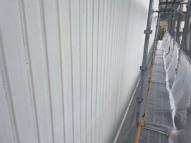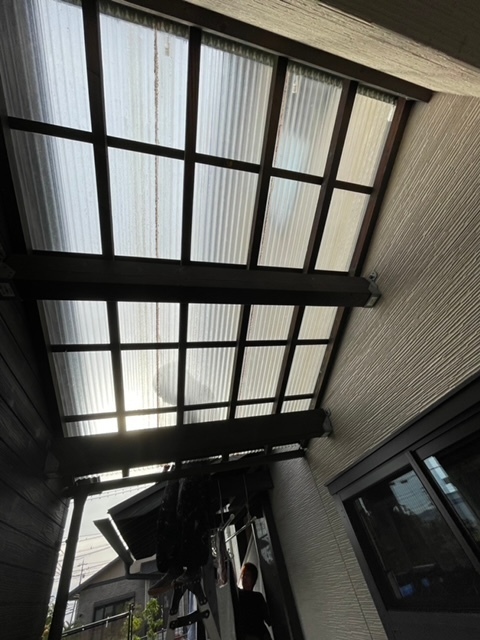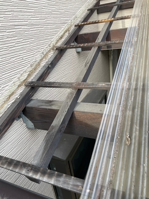 今日は足場解体後の波板の取付作業と大丈夫なんですが自分がめくれ後が気になったので軒天を左官下地して塗り直しました。綺麗になりましたね。ありがとうございました。