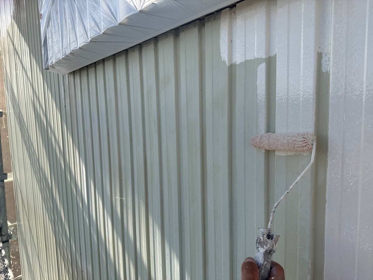 外壁の錆止め作業の様子です。大きな倉庫ですが順調に進んでおります。引き続き宜しくお願いします。またアップします。