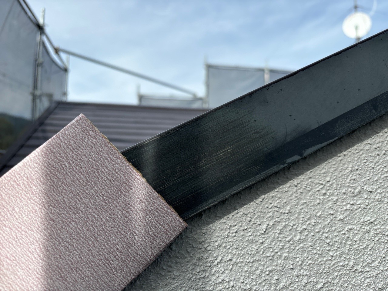 今日の作業は外壁部は全て仕上がり養生もめくり付帯部の補修と屋根の板金から釘が浮いている箇所の打ち戻しと屋根の仕上げ塗りの途中までしました。引き続き宜しくお願いします。またアップします。