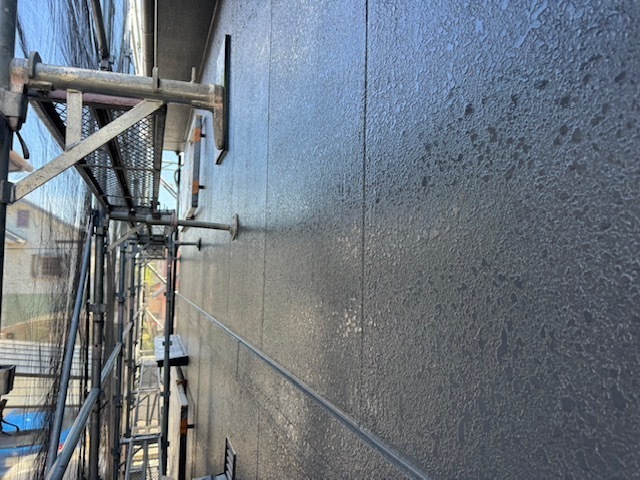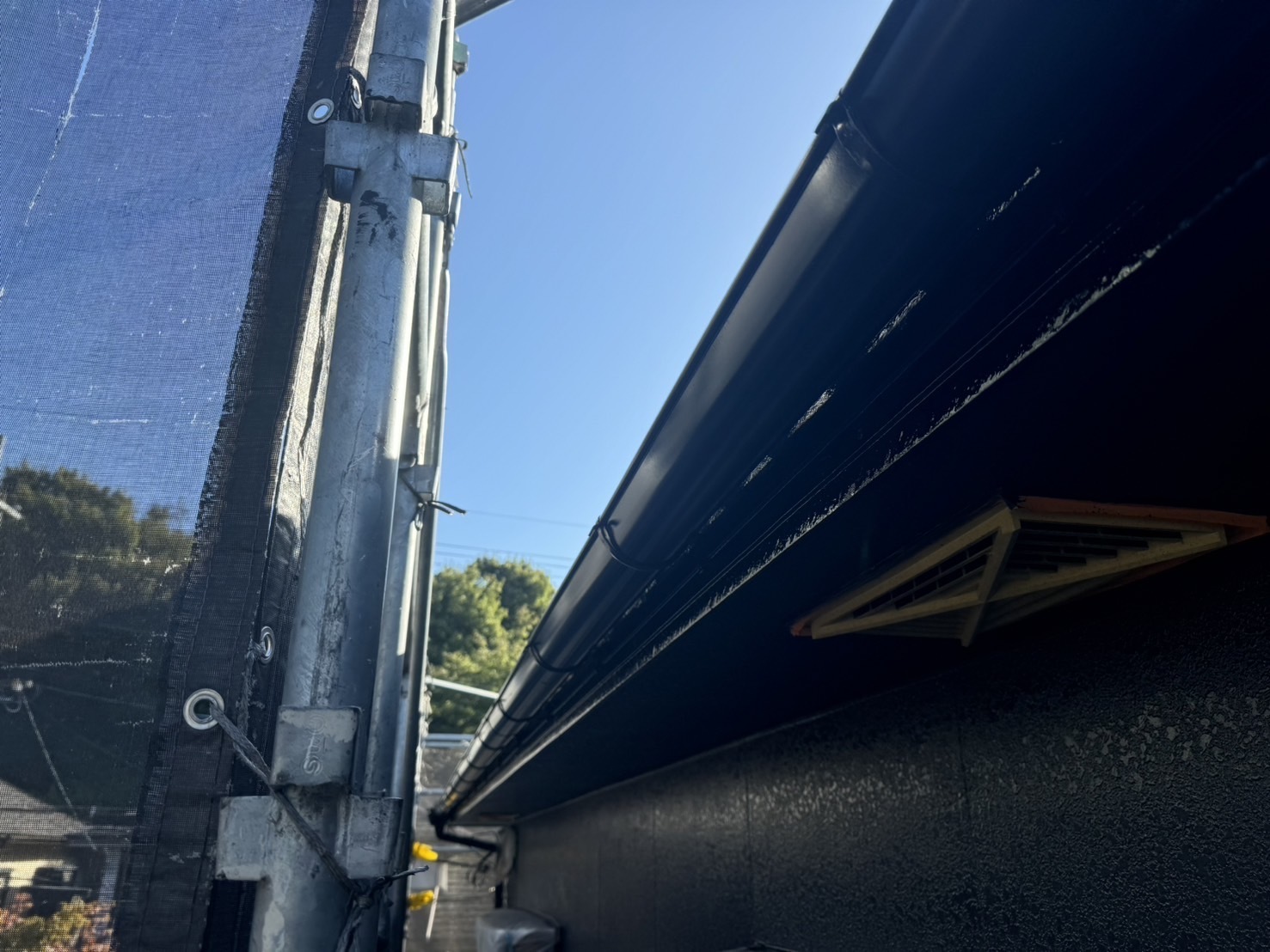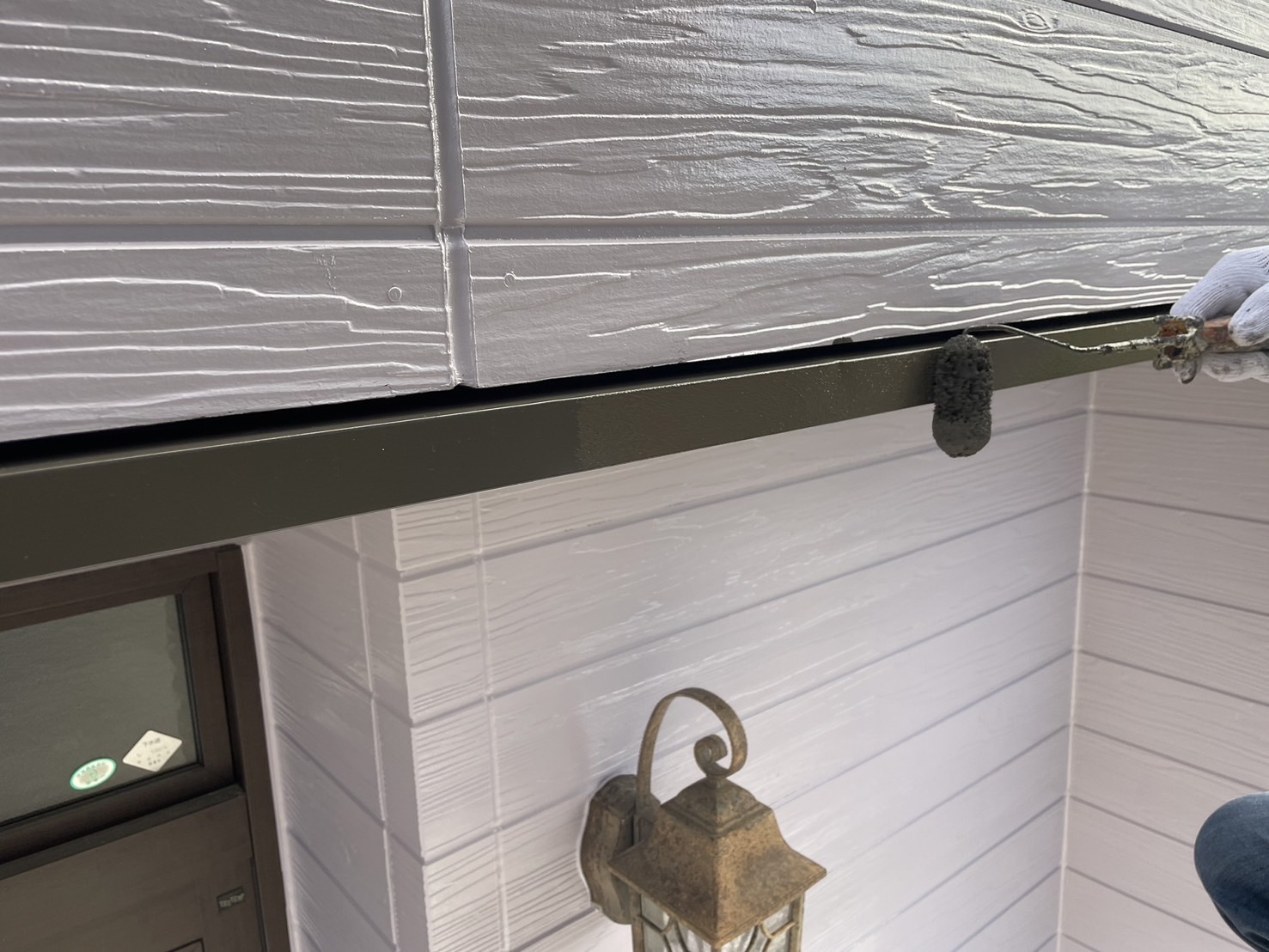 外壁の上塗りの様子です。軒樋や鼻隠しなどの付帯部も進めております。明日も天気良さそうなので進みそうです。またアップします。