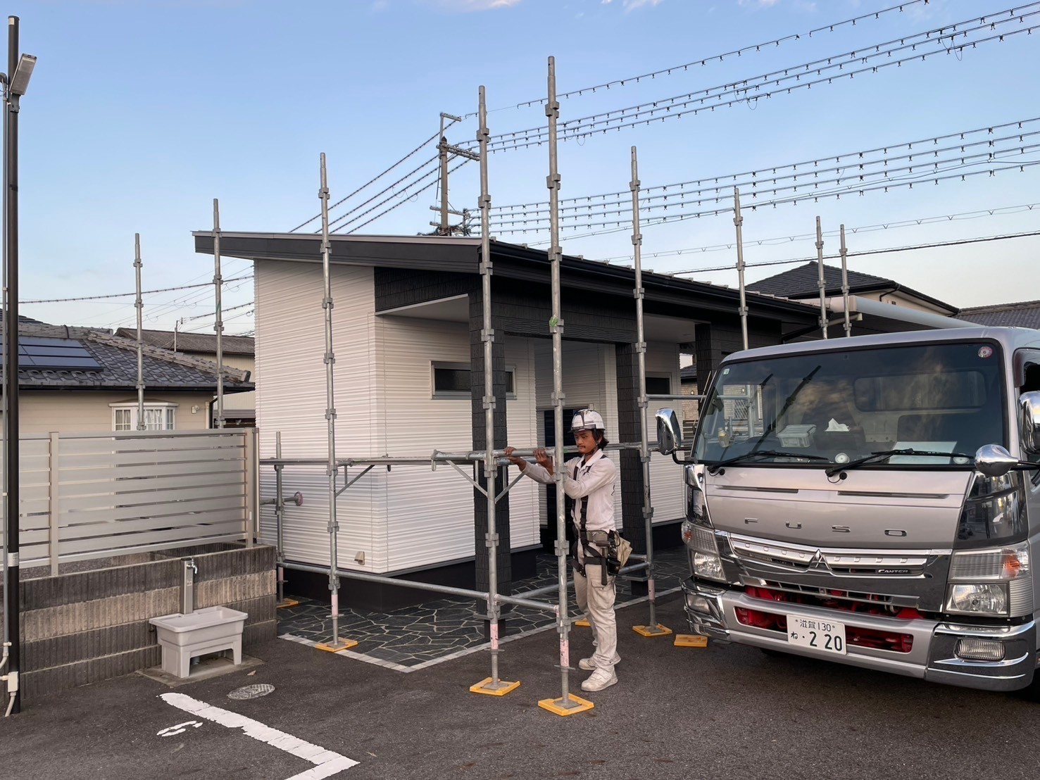 今日は、地元の八幡西中学校の生徒が5名、11月6日、7日、8日とアイホームに職場体験に来るにあたり作業場とトイレの塗装工事の体験をして頂く予定なので先に足場を組立てました。3日間なので先に作業しにくい箇所を工事しておこうと思います。楽しみです^^ワクワクします^^またアップします。