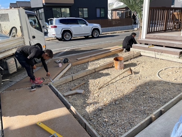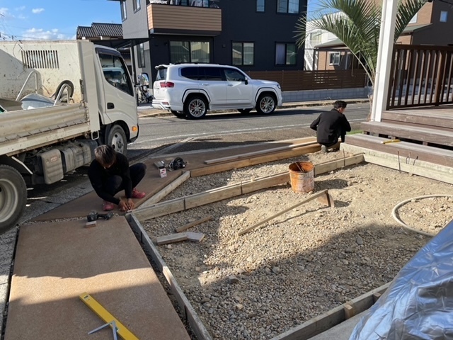 今日は地中にLED電飾ライトの配線工事の接続準備と土間打設前の型枠工事をしています。引き続き宜しくお願いします。またアップします。