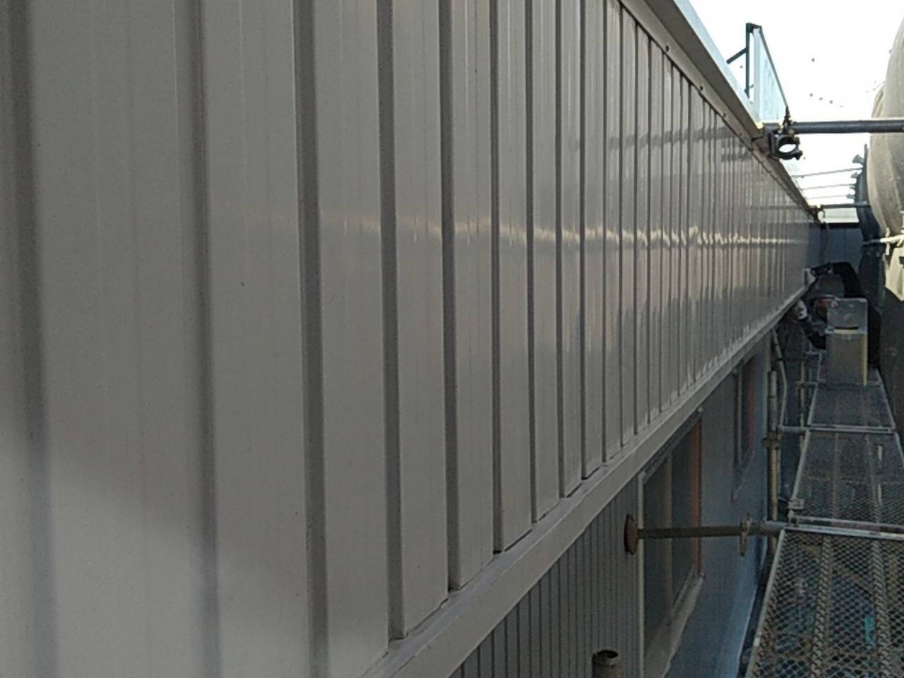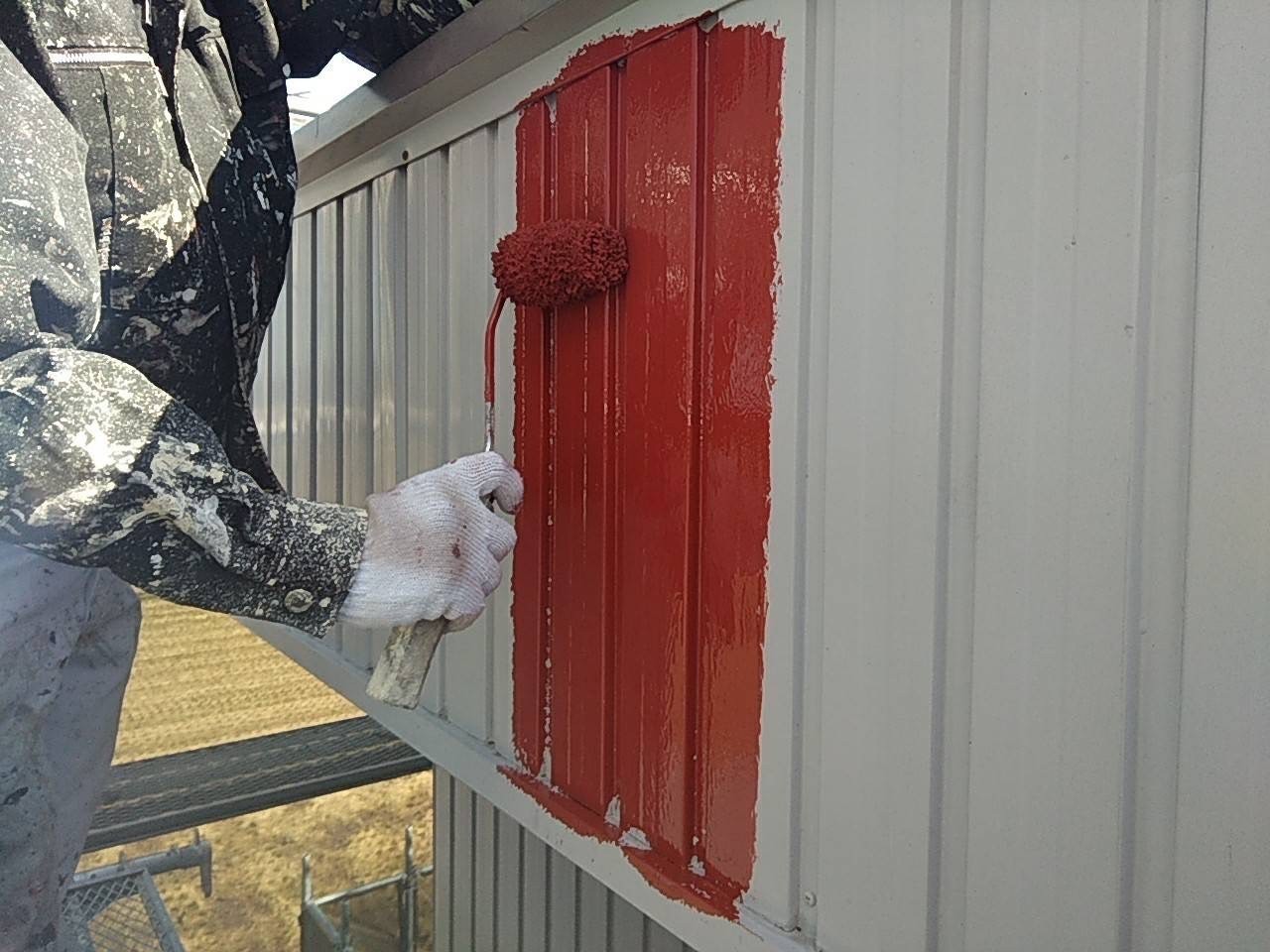 今日は仕上げ色が濃い茶色なのでパラペット部は赤錆で下塗り作業をして外壁部は仕上げ色がベージュなので白錆止めを塗る作業をしました。引き続き宜しくお願いします。またアップします。