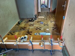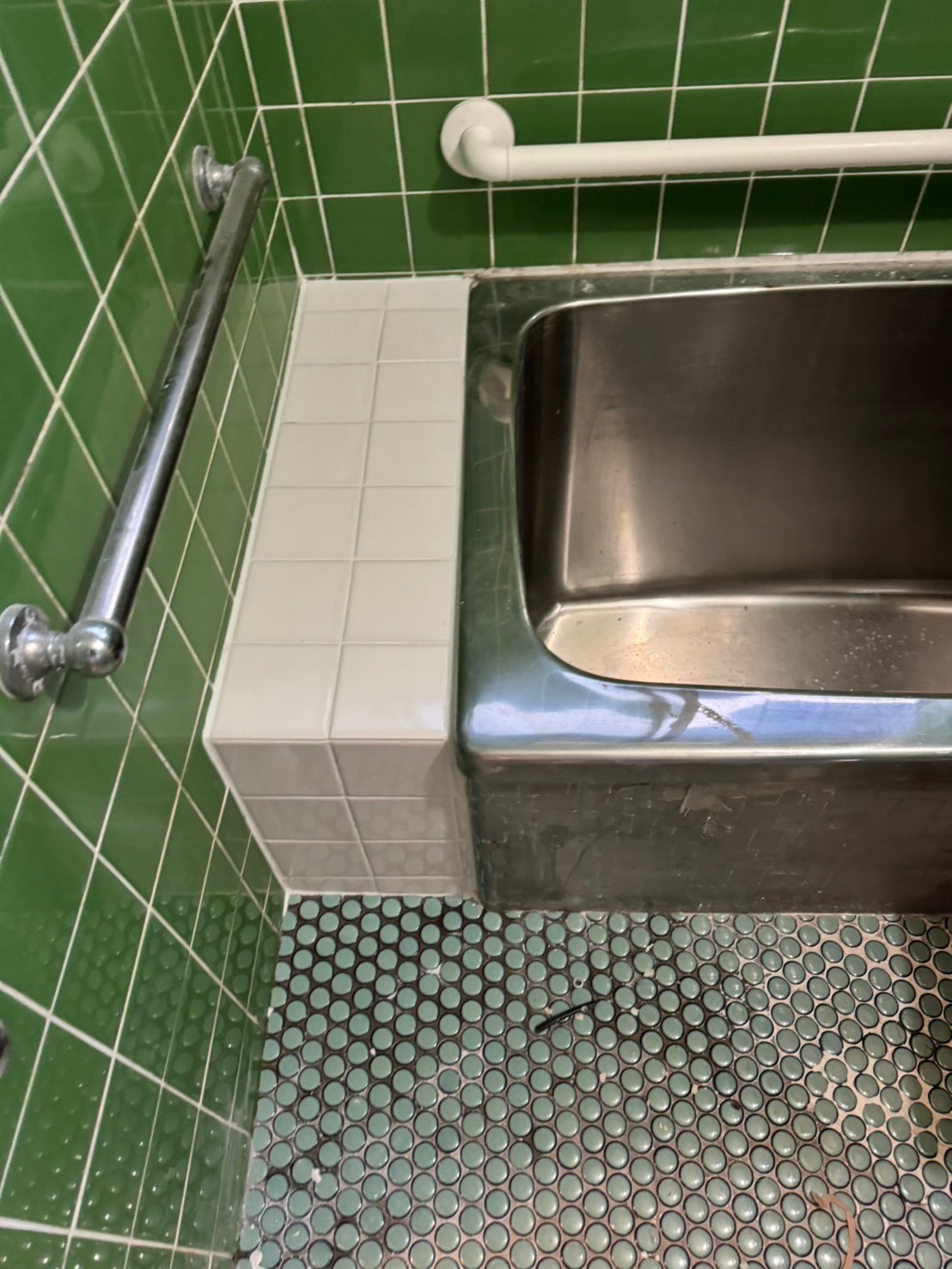 今日は先日撤去した部分の新規タイル貼り工事を行いました。同じタイルは廃盤でないので上手く白タイルでラインを取りました。引き続き宜しくお願いします。またアップします。