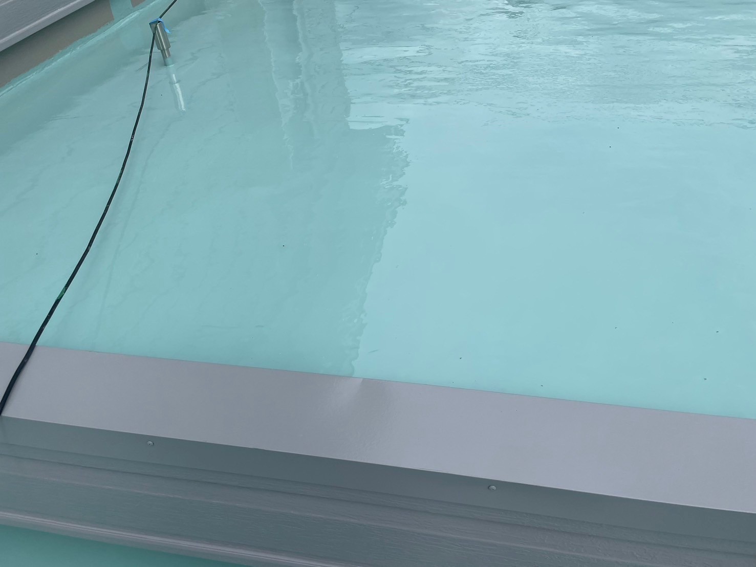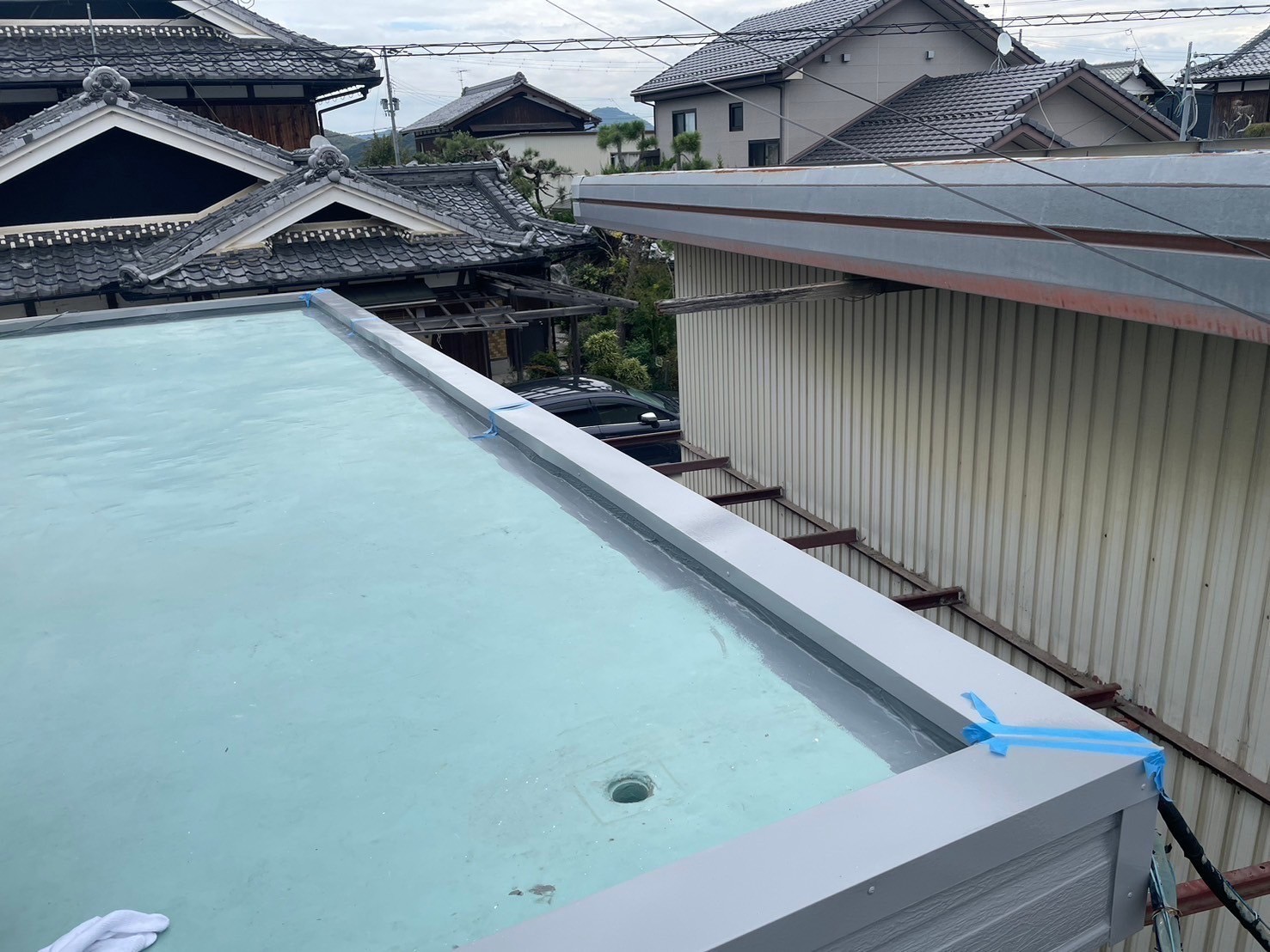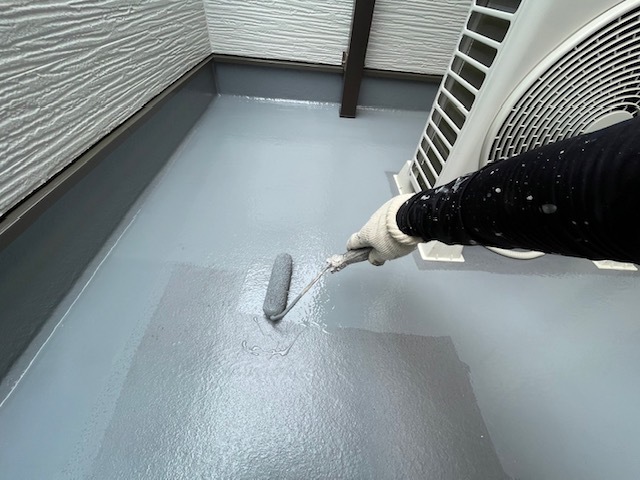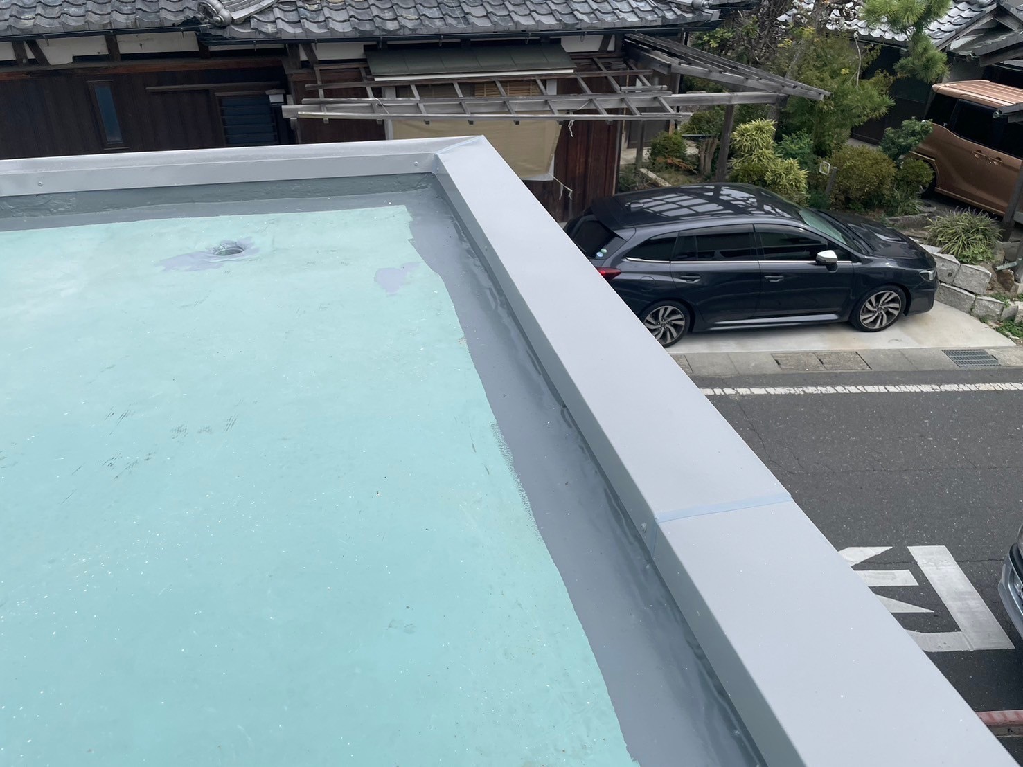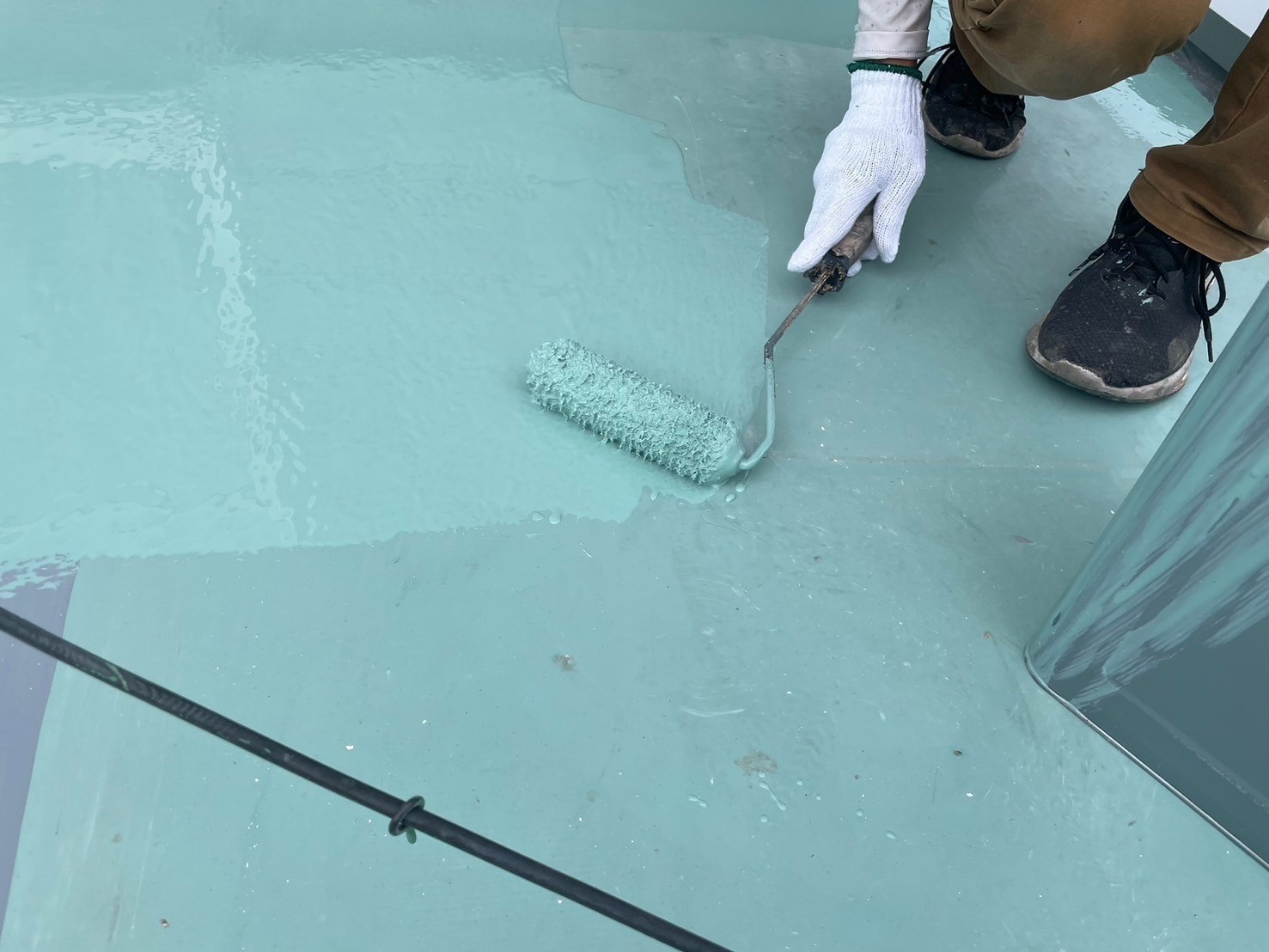 今日は足場の重みでウレタン防水中宇利までしておいたのですが凹みがきつかったので全体にもう一度、中塗りをして凹みを戻して後日、上塗りのトップコートを塗布して行きます。引き続き宜しくお願いします。またアップします。