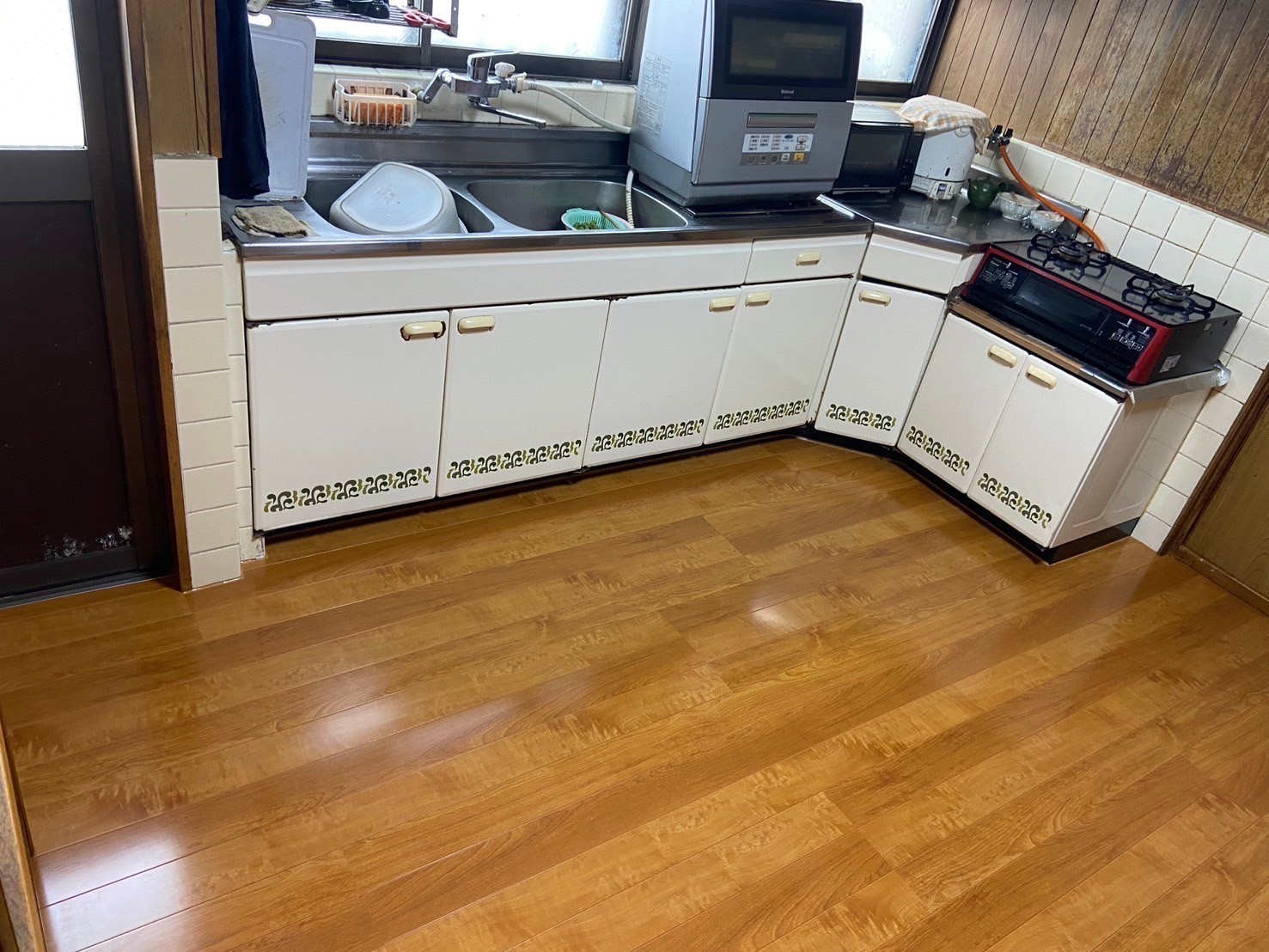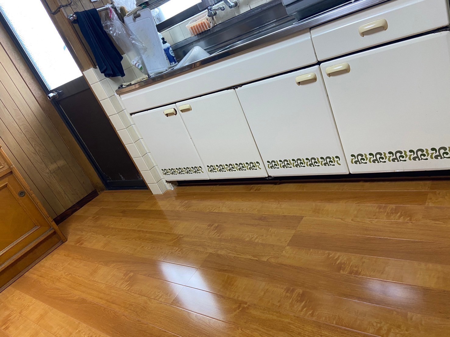 今日はキッチンの床の増し張り工事をして見切り、コーキング作業をして完工しました。室内関係は全て終わりました。塗装工事は雨が降ったり止んだりの天気でしたので雨に濡れない箇所の2階の雨戸の塗装と1階の庇の塗装と外部の換気ガラリの塗装をしました。引き続き宜しくお願いします。またアップします。