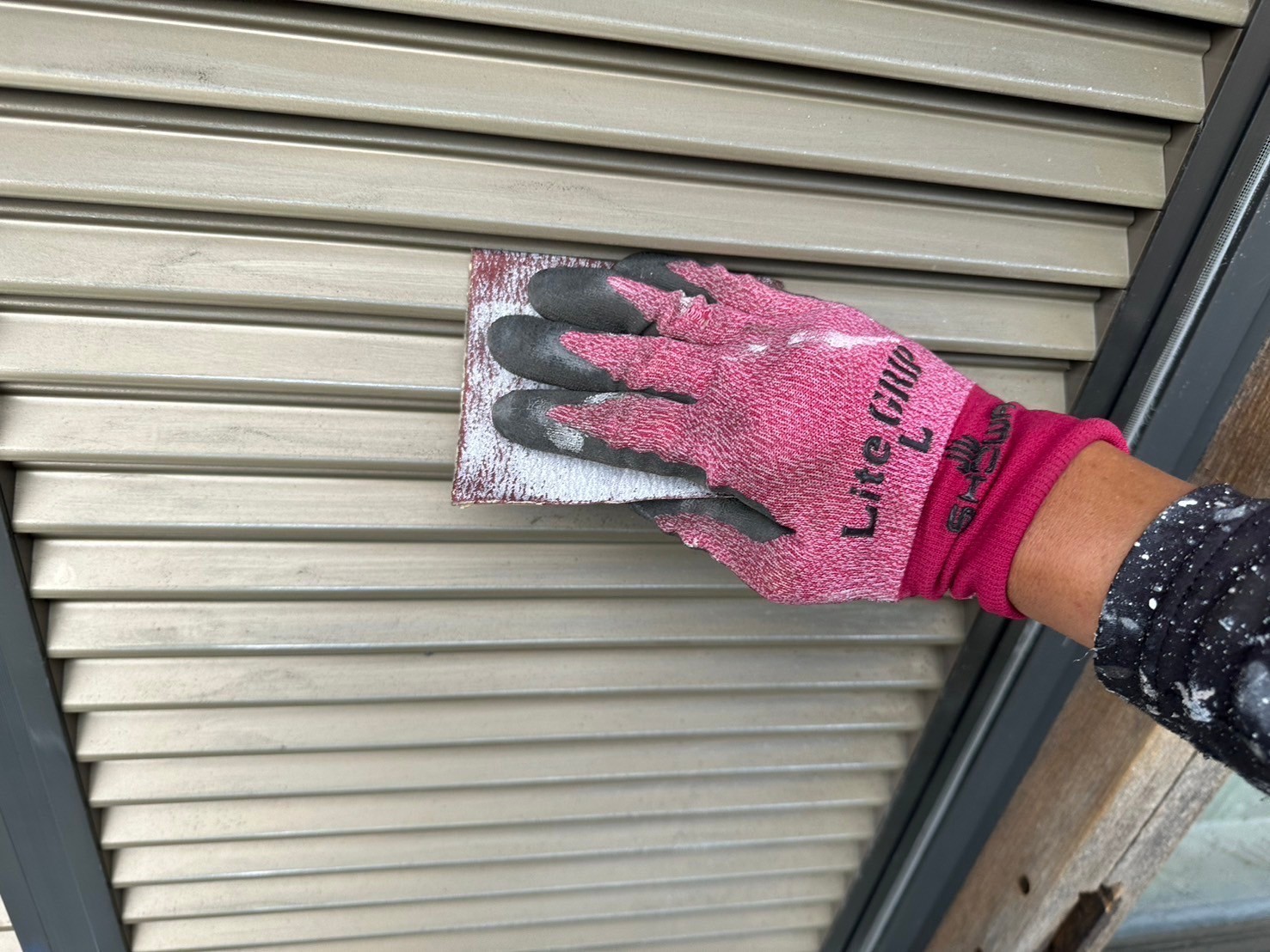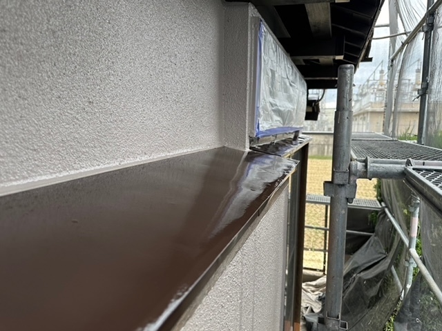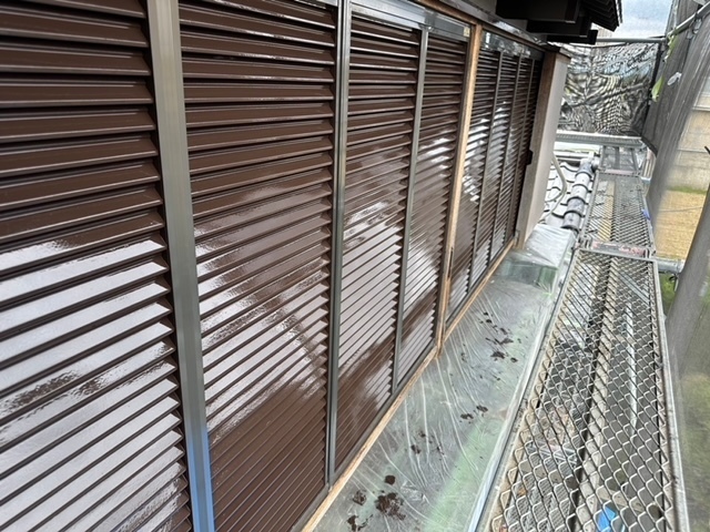 今日は水切りの塗装と雨戸の塗装とベランダの塗装を進めました。月曜日に仕上げ作業を行います。雨戸も良い色に現場で調色してくれました。職人技です。違和感なく良い感じの色の仕上がりです。引き続き宜しくお願いします。またアップします。