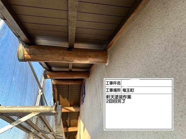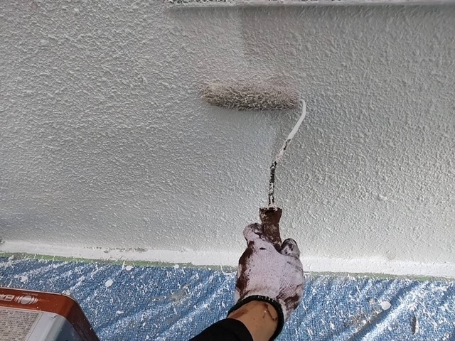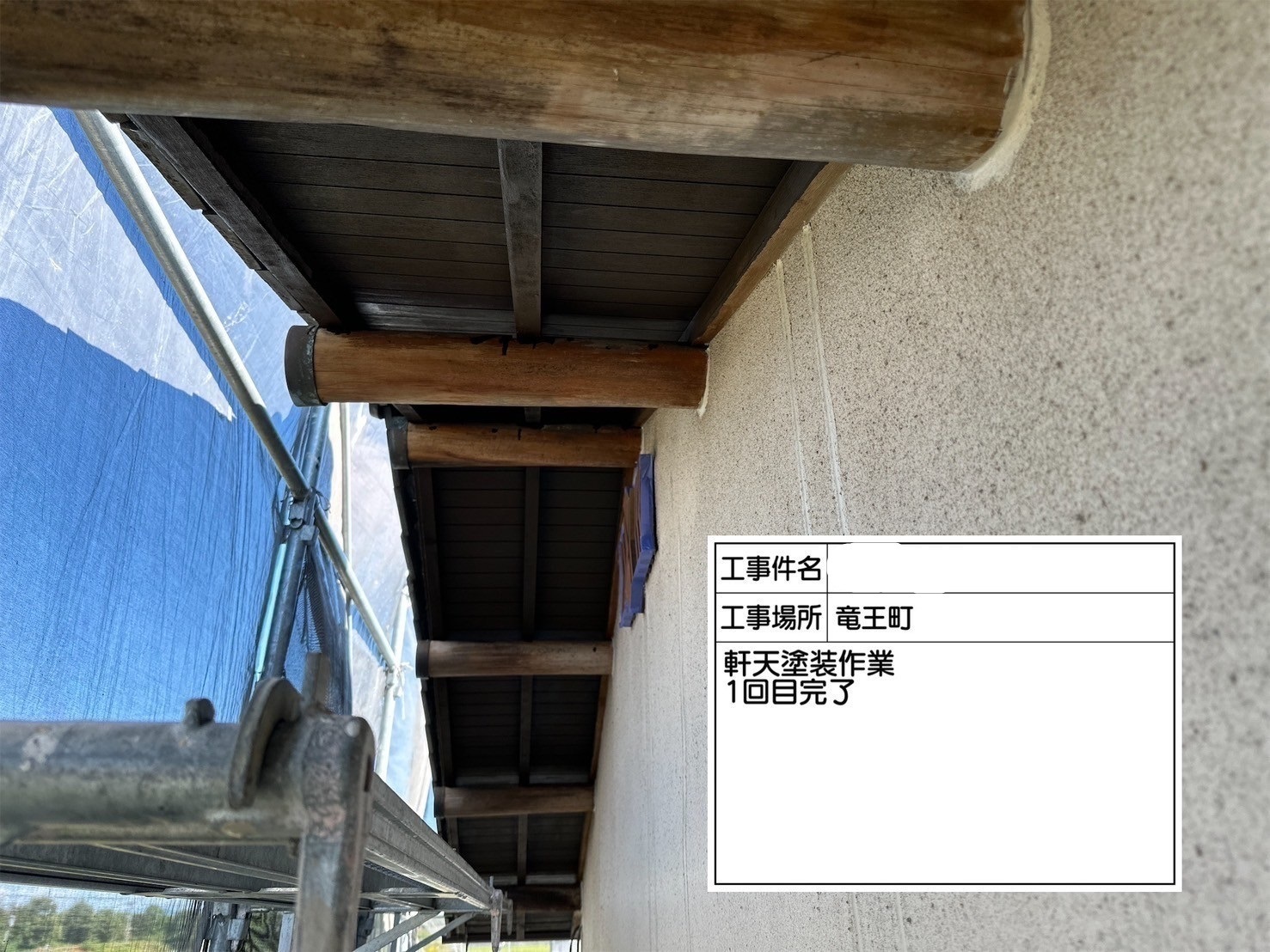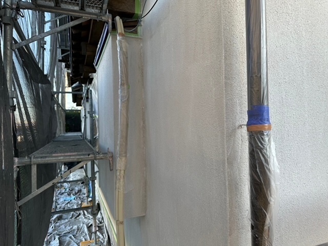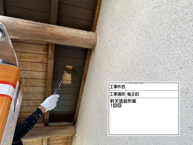 今日は軒天の仕上げられる箇所から塗装1回目、2回目塗りの作業と外壁の下塗りが出来る箇所から下塗りの作業をしました。引き続き宜しくお願いします。またアップします。
