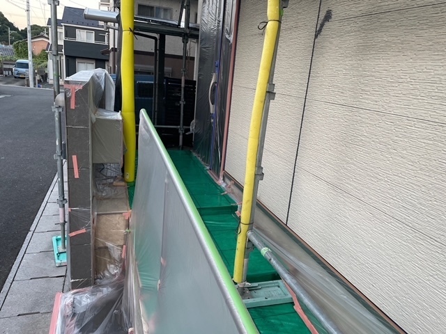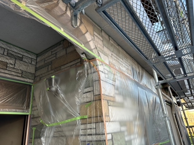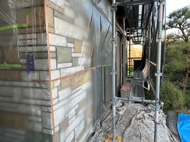 Sさま邸、今日も引き続き養生作業進めました。大きな建物なのでいつもより養生大変ですが丁寧に進めております。引き続き宜しくお願いします。またアップします。