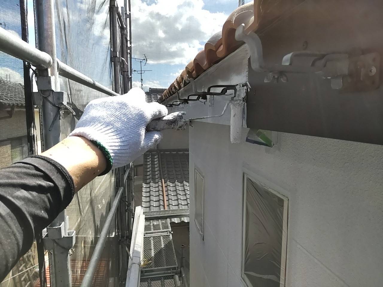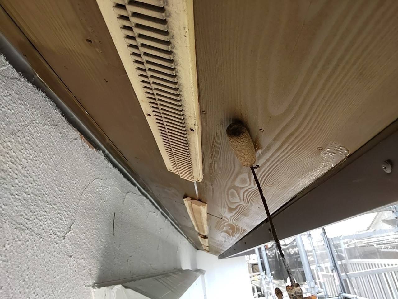 今日は、破風板、鼻隠し、桁を平板板金で被せた後の塗装作業と木部軒天の塗装作業の様子です。引き続き宜しくお願いします。またアップします。