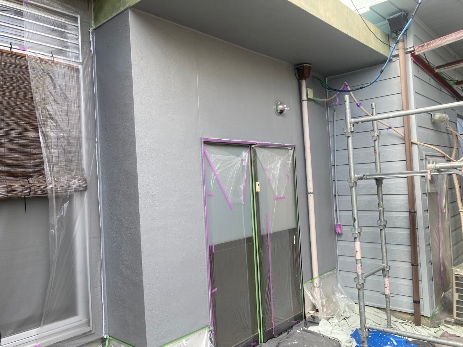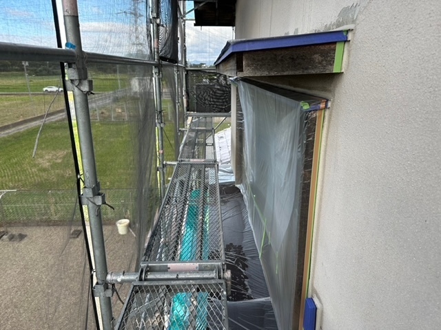Sさま邸の今日の作業は養生作業です。コーキング自体もしっかり乾いているのでここからどんどん作業進めていきます。明日も引き続き養生作業進めていきます。またアップします。