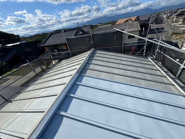 今日は外壁の上塗り仕上げ(3回目)と屋根の中塗り(2回目)を致しました。引き続き宜しくお願いします。またアップします。