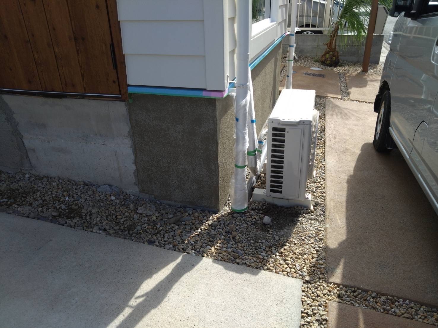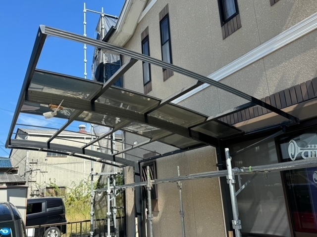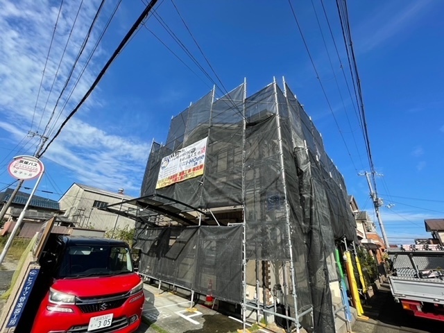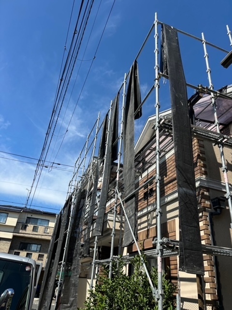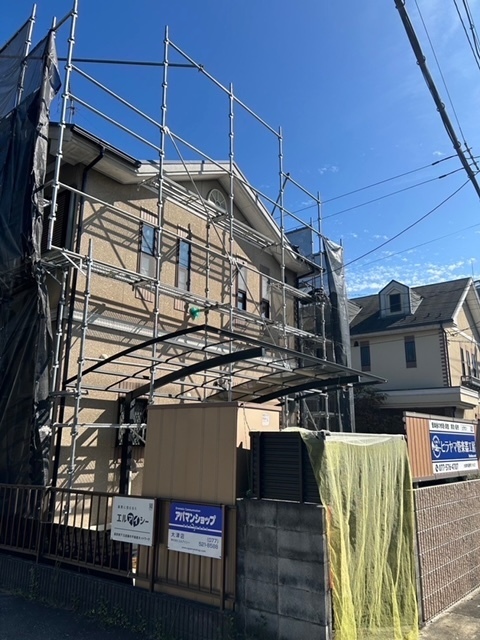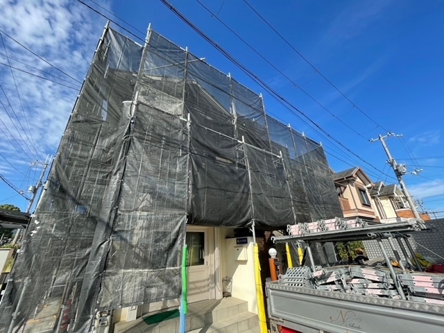 今日から足場の組立て工事に入ります。足場の単管を設置するのにカーポート、テラスのパネルが干渉してきますので一旦取り外してしっかりと足場を組立てます。明日は高圧洗浄です。引き続き宜しくお願いします。