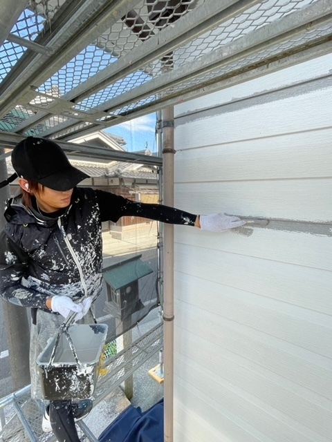 シーリング工事完了しました。明日が雨予報なので日曜ですが前倒しでコーキングの仕上げ工事行いました。明日明後日と2日間乾燥させて水曜日から塗装工事スタートします。またアップします。