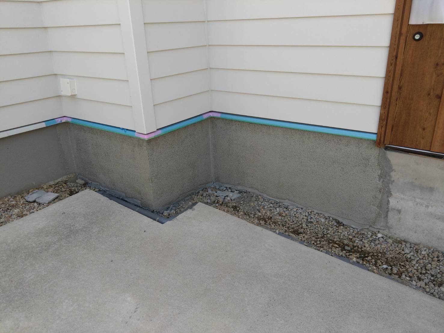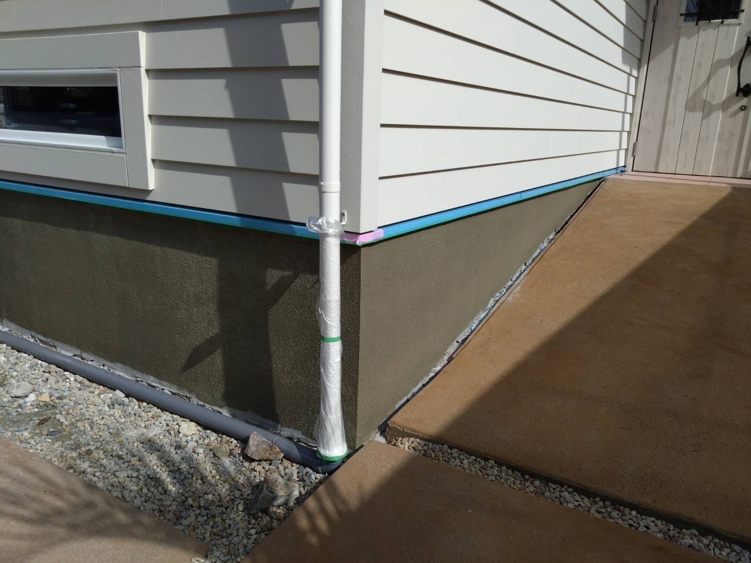 今日の作業は基礎巾木の模様(パターン)付をしました。後はグレーで仕上げのトップコートのみです。引き続き宜しくお願いします。またアップします。