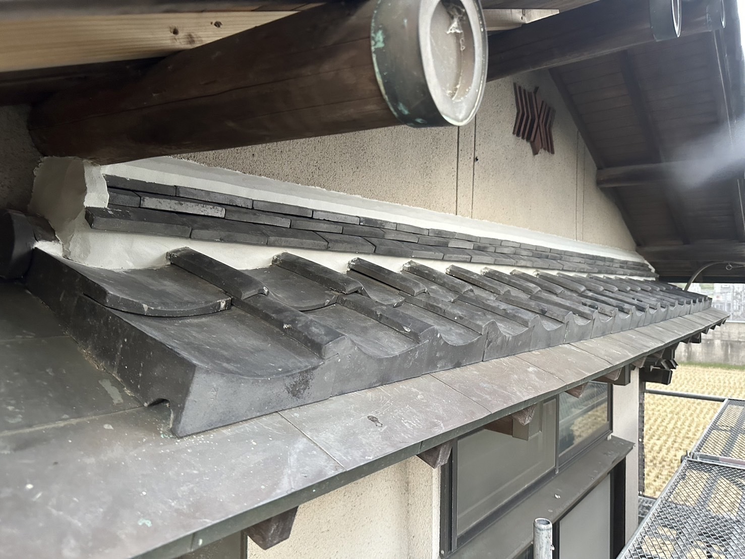 今日でTさま邸の屋根全体の三日月漆喰工事は全て完了しました。綺麗に仕上がりました。Tさま引き続き宜しくお願い致します。