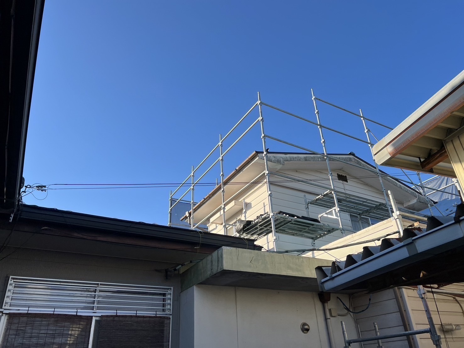 Dさま邸の、屋根・外壁塗装の追加工事を頂きましたので今日、追加足場の組立て作業を行いました。屋上防水は後トップコートだけとなりますが先に仕上げてしまうと足場の傷や足跡が残りますので足場を解体後にさせて頂きますね。先に塗装の段取りからさせて頂きます。宜しくお願いします。またアップします。