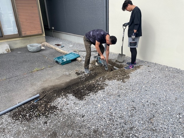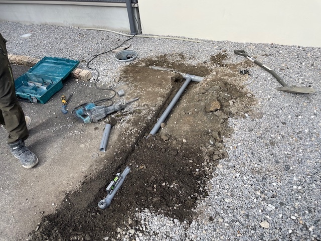 駐車場に水溜まりが出来てしまって困っているとお悩みのご相談を頂きました。目皿を設置して配管を雨水枡に流れるように工事しました。何度かバケツで水はけテストしましたがしっかり水が流れるので喜んで頂けました。Tさま大変お世話になり、ありがとうございました。