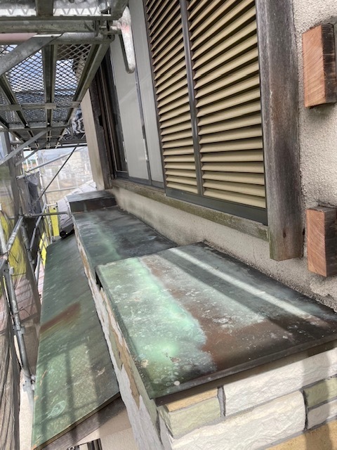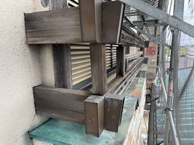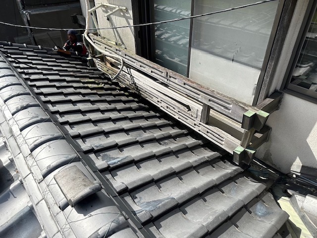 Tさま邸、今日は下屋根の壁のしステッチ積み替えと木部の手摺の作を4箇所解体しました。私は、今日も現場です^^蒸し暑いですね。足場を組んでみたらモルタルの外壁がクラックがいっぱいでした。また木部も腐食する手前でしたのでお客様に足場に上がってもらい説明させて頂き外壁塗装のお仕事を追加で頂きました。私石橋にお任せください。屋根瓦、外壁部の後のサポートはしっかりさせて頂きますね。またアップします。