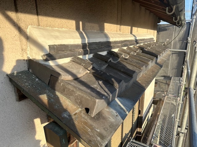 今日は庇のし積み替えと部分補修を行いました。先日積み替えた庇のしの漆喰も進めました。綺麗に仕上がっております。またアップします。