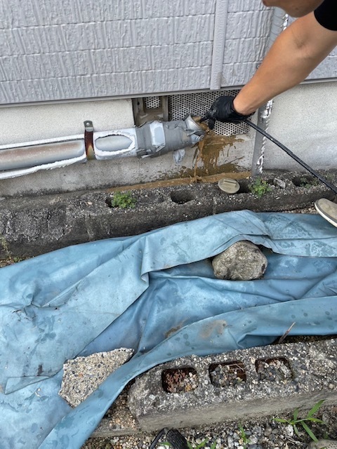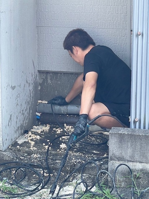 Dさま邸キッチン流しの配管が油汚れ等で蓄積されていたために塊が配管に詰まり、外配管から水が流れず逆流してきたそうなので流し台の中の配管と外配管から枡にかけて高圧洗浄作業を行いました。Dさまこれで安心してキッチン使用できますね。1年毎に配管の高圧洗浄作業の契約を依頼して頂きました。お家のことなら何でもアイホームにお任せくださいね。また防水工事の様子は後日工事進みましたらアップします。