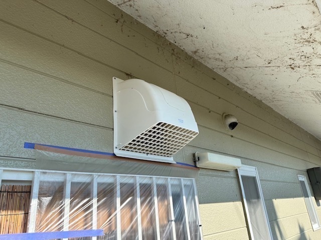 以前に塗装工事をさせて頂きましたアパートの換気フード交換工事をさせて頂きました。交換後は外壁と同色に塗装し仕上げました。Fさま大変お世話になり、ありがとうございました。