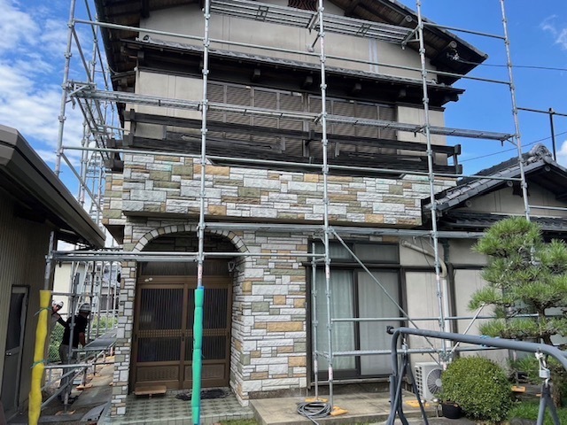 Tさま邸、足場架設工事の様子です。これから本格的に工事スタートです。Tさま宜しくお願い致します。