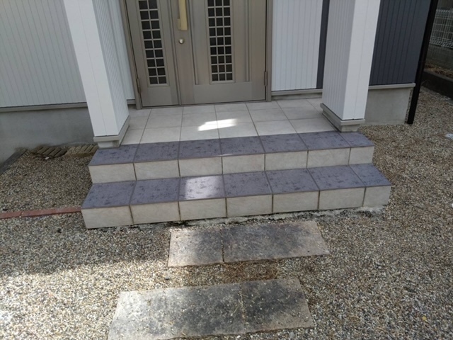 玄関タイルのステップ部分をラインタイルに張り替えさせていただきました。素敵なアクセントです。また階段の部分なので躓かないように色を変えることで注意もできますね。またアップします。