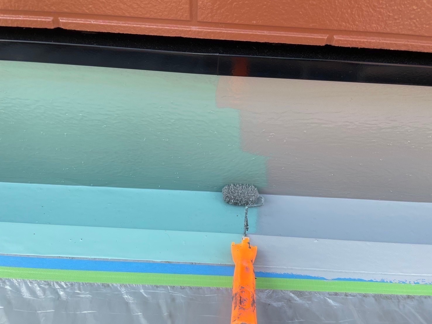 クリアー塗装部分のコーキングをオートンイクシードで施工しました。外壁工事はこれで完了となります。ベランダの溝部と立ち上がり部分のウレタン塗膜防水も同時で進めていきます。明日は足場解体予定で残り作業はテラスパネルの波板の復旧作業になります。台風10号が来るまでにはIさま邸は終われそうです。それ以外のお客様の現場は台風来るまでに足場シートを畳み台風養生する予定です。またアップします。