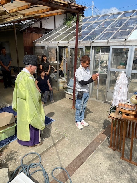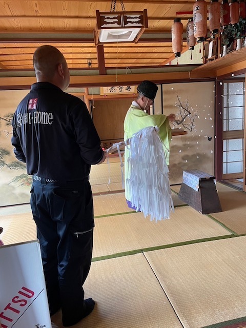 Yさま邸、解体工事着工前に事故・怪我無い様にと、またYさま邸の皆様の益々のご繁栄を神主さんに祈祷してもらいました。また工事が進みましたらアップします。