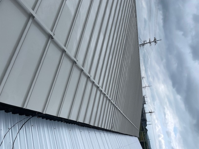 Kさま倉庫の屋根の完成の様子です。本日検査させて頂きました。数カ所手直し箇所があったので日曜日に修正をかけてお引き渡しです。またアップします。