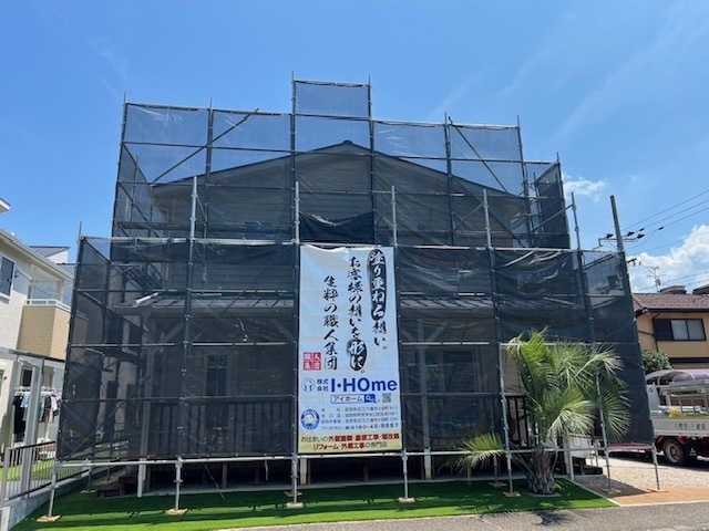 増築工事のKさま邸の足場架設完了です。16日にお家の高圧洗浄を実施予定です。増築工事の様子も随時アップします。