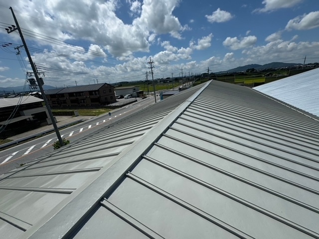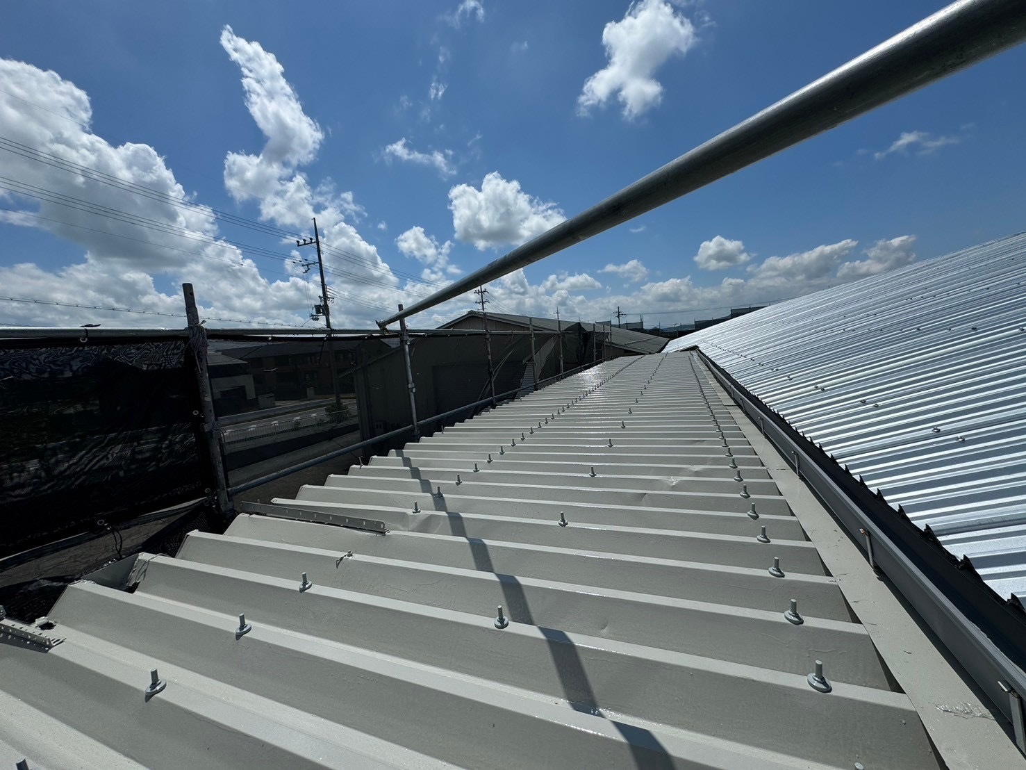 Kさま邸の倉庫の屋根も完了しました。検査を実施したら足場解体予定です。写真でも良く分かりますが本当に綺麗に仕上がっております。次は防水工事も検討されているのでまたアップします。