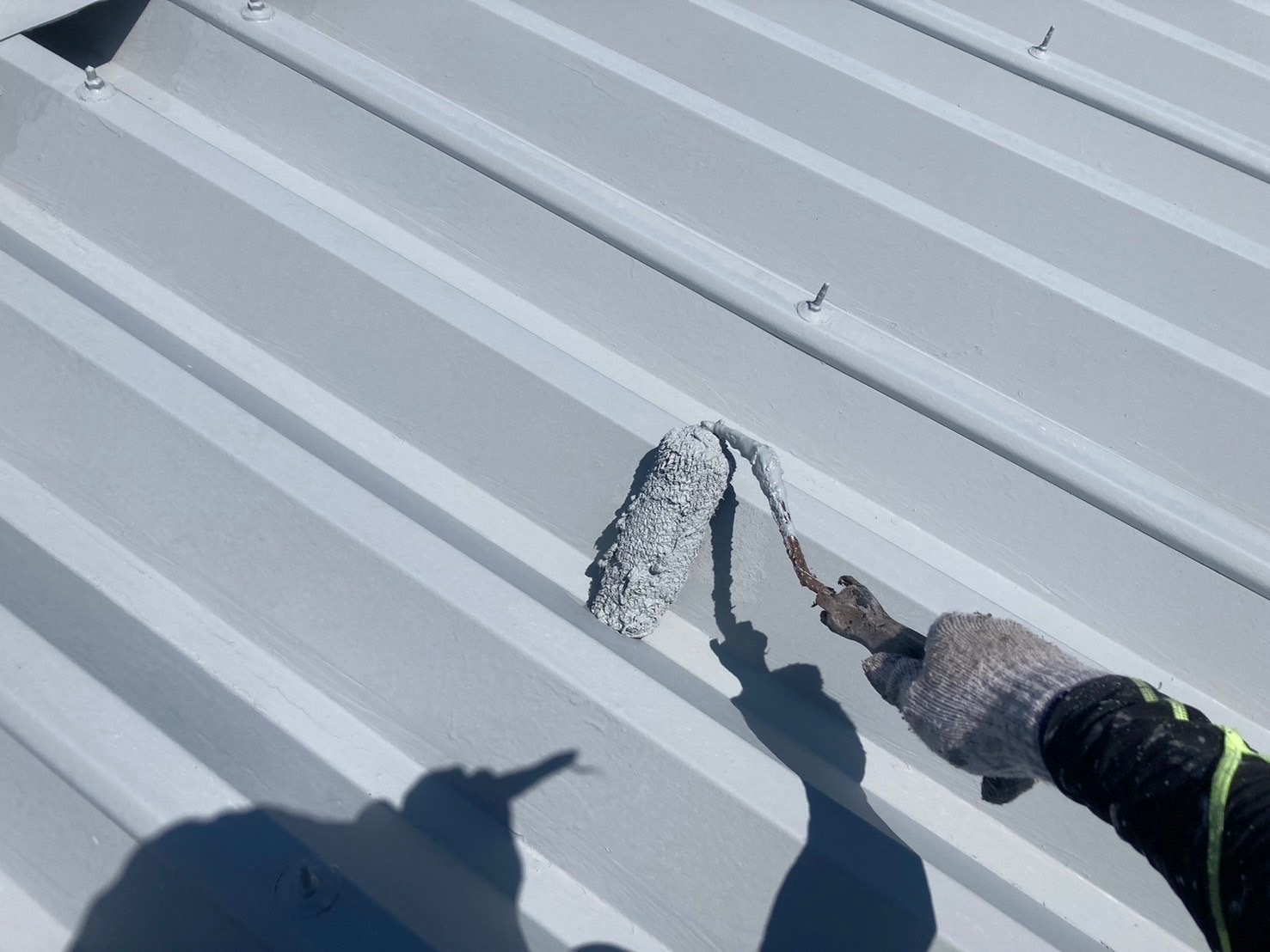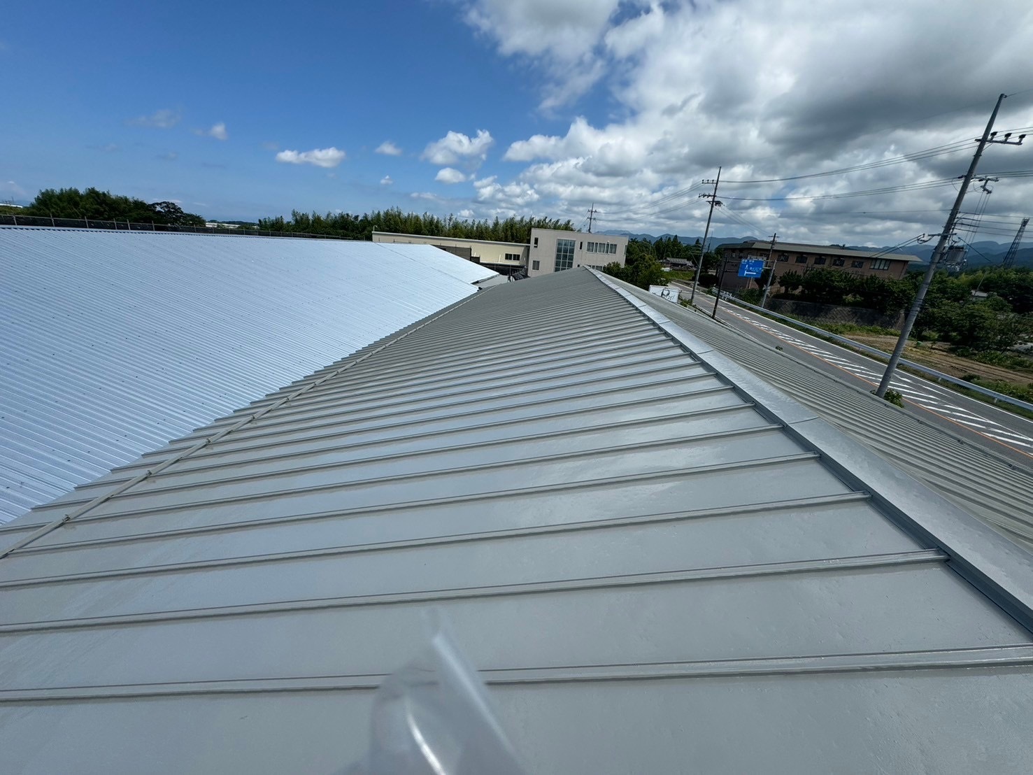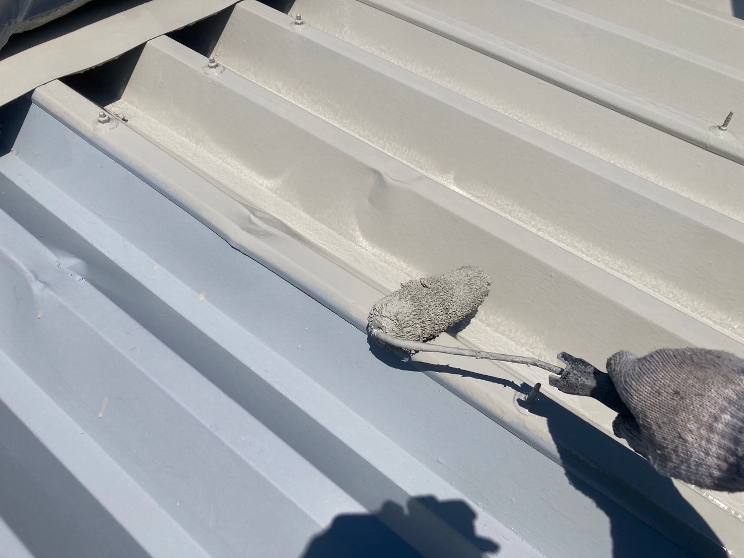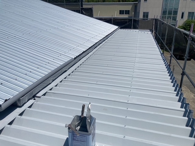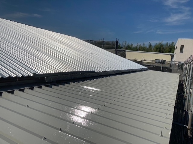 今日も暑い中、職人さん頑張ってくれました。折板屋根の中塗りまで進めて瓦棒は中塗り完了して上塗りも始めております。あと1日か2日で工事完了予定です。またアップします。