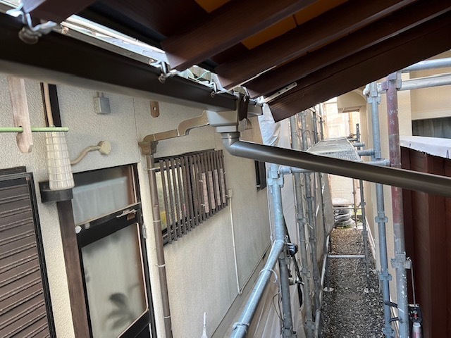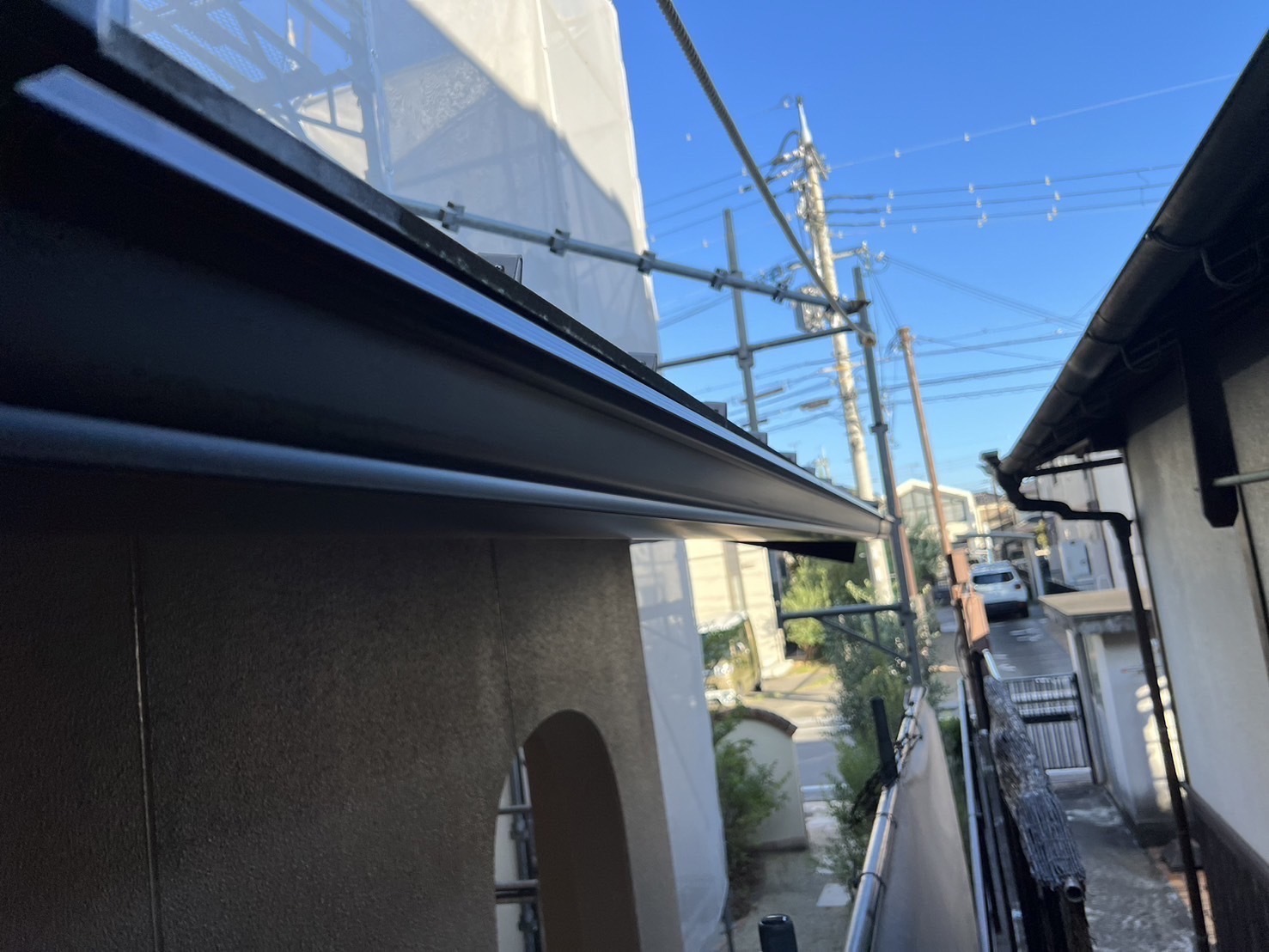 今日は雨樋工事と笠木工事を進めました。板金職人が綺麗に仕上げてくれました。笠木も板金にしたことで木部への水の浸入も防げるようになりました。またアップします。