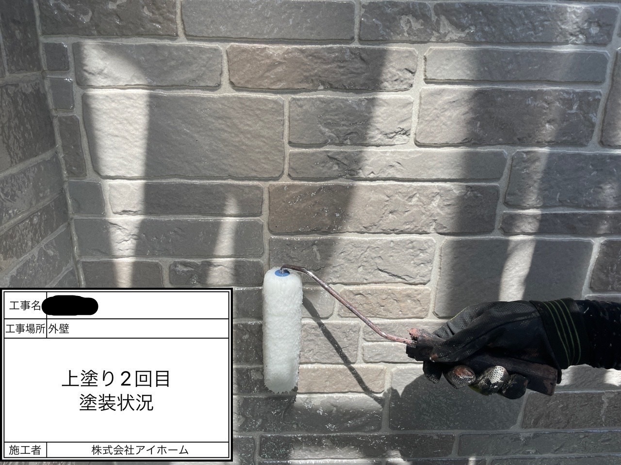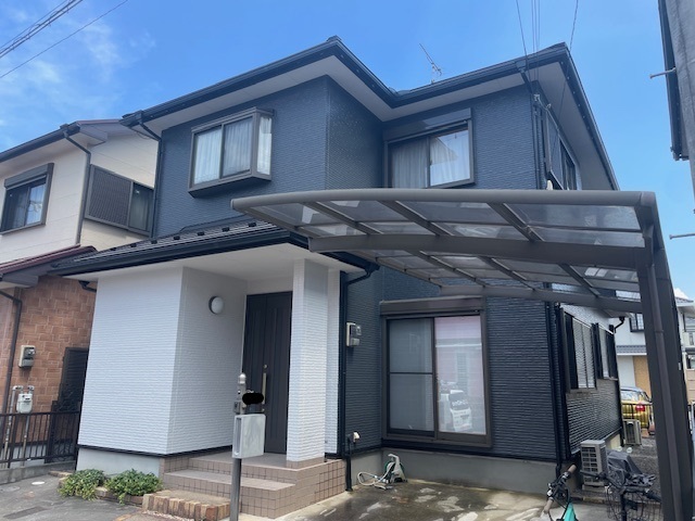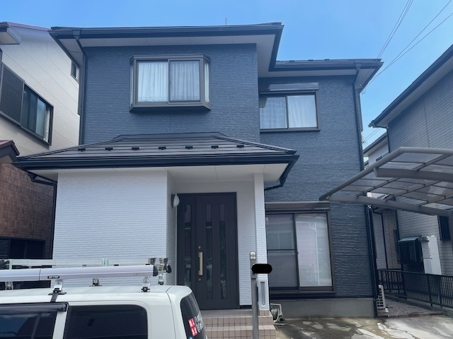 外壁のクリアー塗装の様子です。艶が出て新築のように戻りました。クリアー塗装は元々の風合いを損なわずお気に入りの柄を残すことが出来ます。付帯部も完了しました。Iさま邸完成です。また完成写真アップします。