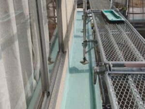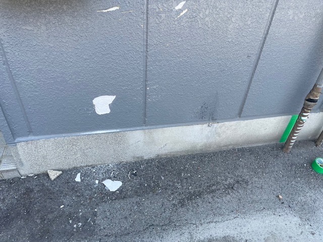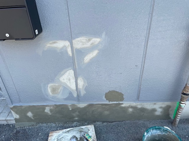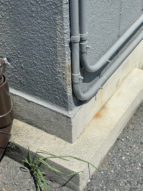 マスの蓋を耐圧蓋に交換させて頂きました。外壁の破損部はカチオン金鏝下地作業を行いました。盆明けに玉柄吹付と玉柄カット作業を行い後日、ALC外壁シーラー下塗り、中塗り上塗りで仕上げて行きます。基礎の部分もカチオン金鏝仕上げ行いました。また配管の隙間のシーリング工事も実施済です。またアップします。