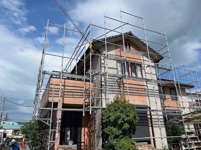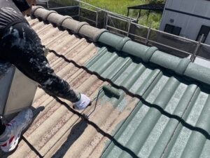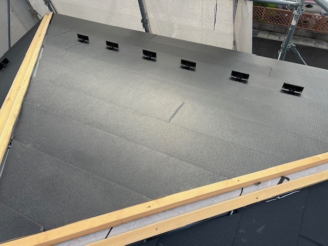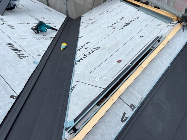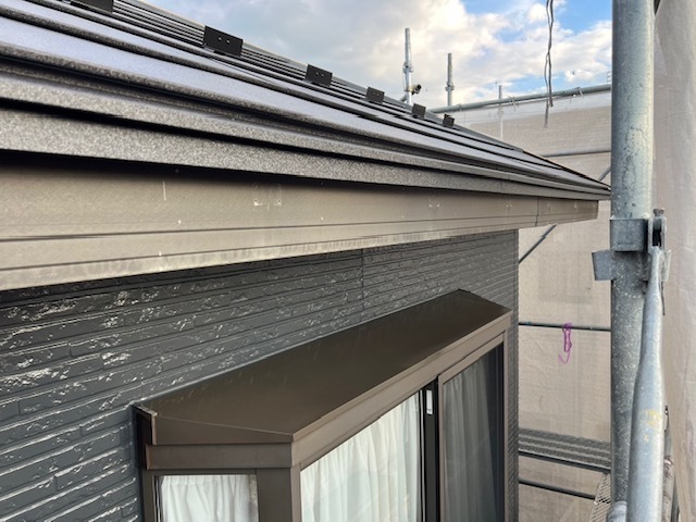 塗装工事も順調に進んでおります。明日には仕上げを行い塗装工程は足場解体前の検査を行います。雨樋も撤去したので残りの鼻隠しの塗装と水切りの塗装、掃除タッチアップを明日実施します。屋根のカバー工法は大屋根は谷板金完了しました。屋根も順調に進んでおります。晴れ間が多いので工事がスムーズに進みありがたいです。またアップします。
