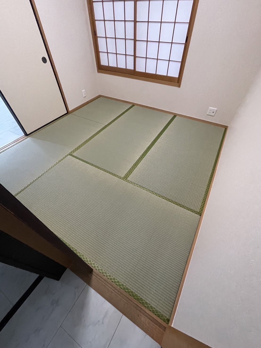 Mさま物件の内部工事の様子です。外部は塗装工事完了しました。内部もトイレ、洗面台、エアコン、クロス、畳、襖、障子と沢山工事させて頂きました。外も中もとても綺麗で新築のようになりました。また完成写真アップします。
