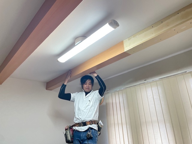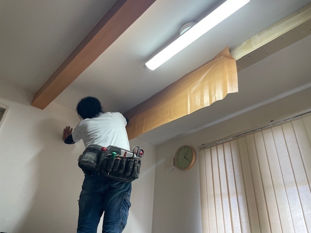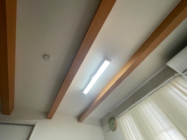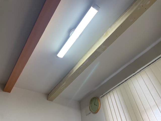 クロス工事させて頂きました。梁の部分が雨漏りでクロスが腐食し下地も腐っていたのでボードも貼り替えてパテしてクロス完了です。新築の時のクロスを残しておられたので他の柱とも違和感なく交換すること出来ました。Mさま大変お世話になり、ありがとうございました。