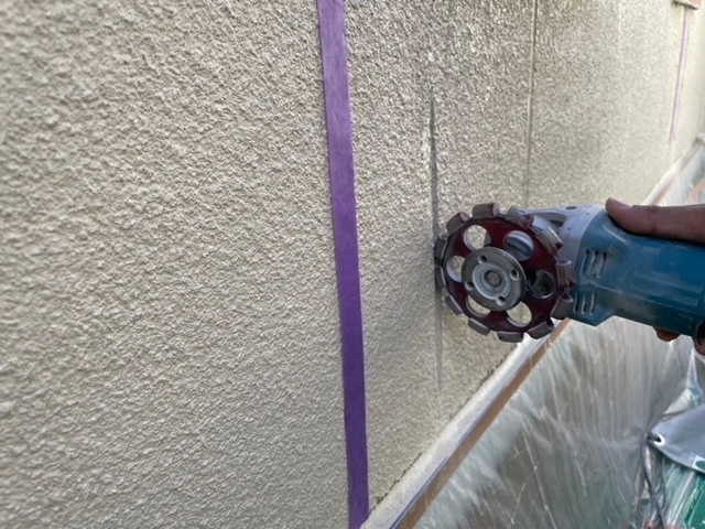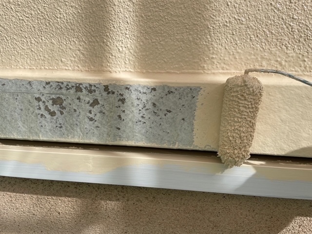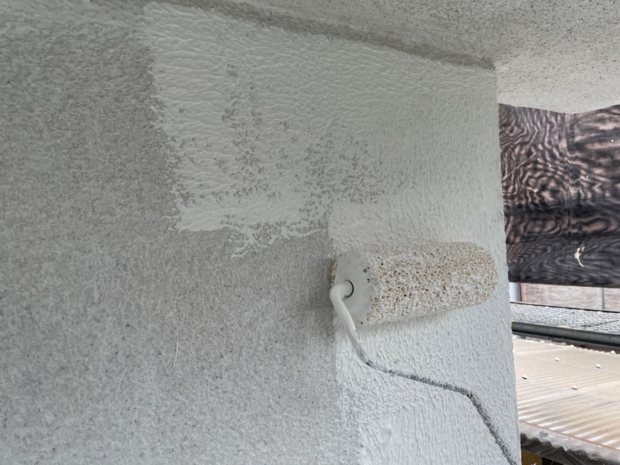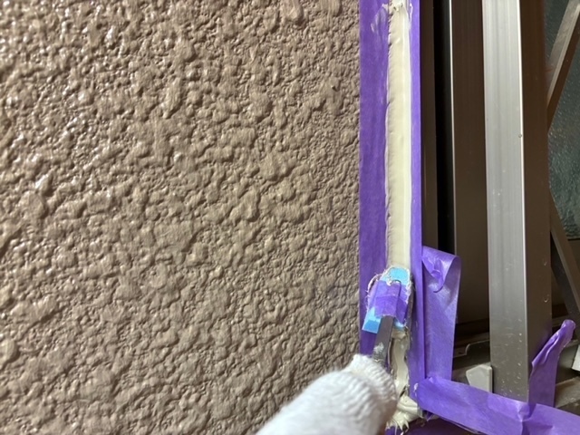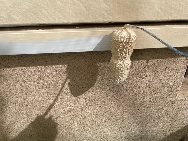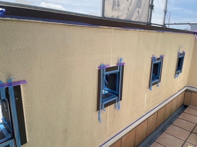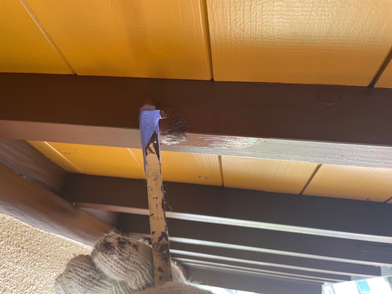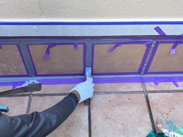 外壁のクラック部分はUカットで処理しました。カチオンで補修も行いました。ベランダの笠木周りもしっかりシールして水の浸入を防ぎます。今回はタイル目地もコーキングで行いました。細かな付帯部の塗装も進んでおります。木部も綺麗に塗装進んでおります。またアップします。