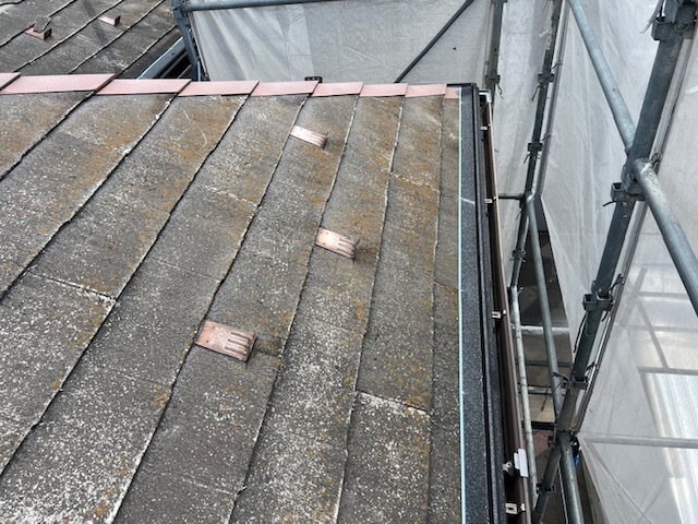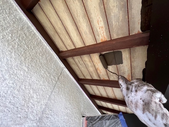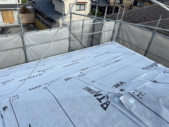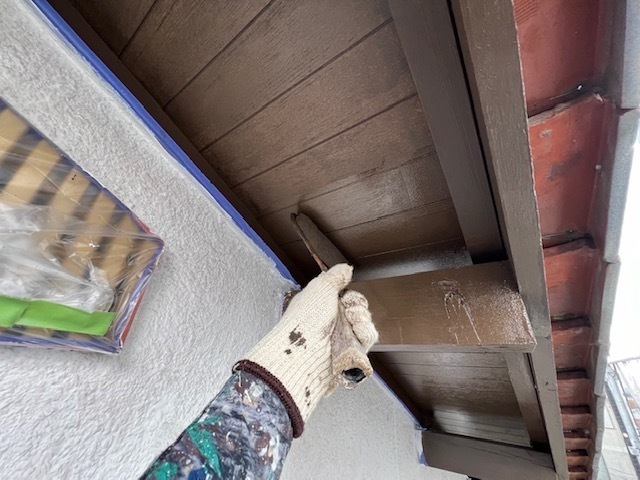 今日は屋根のカバー工法と塗装同時進行で工事しました。屋根の軒先の板金据えてルーフィング施工しました。塗装は養生を終わらせて軒天2回塗装進めました。またアップします。