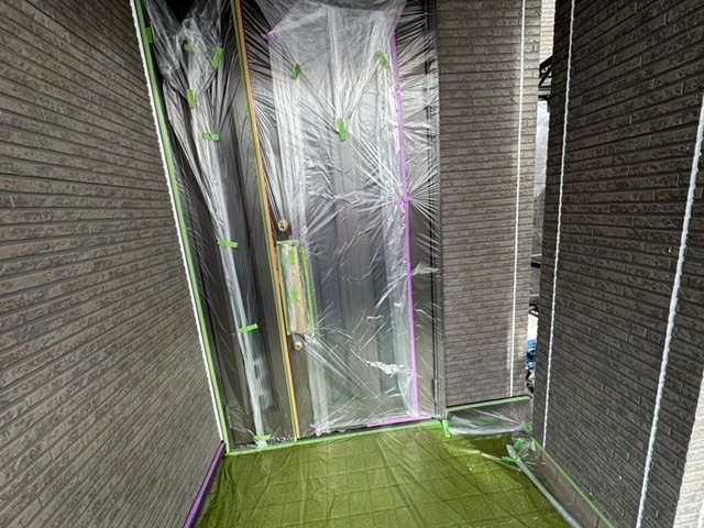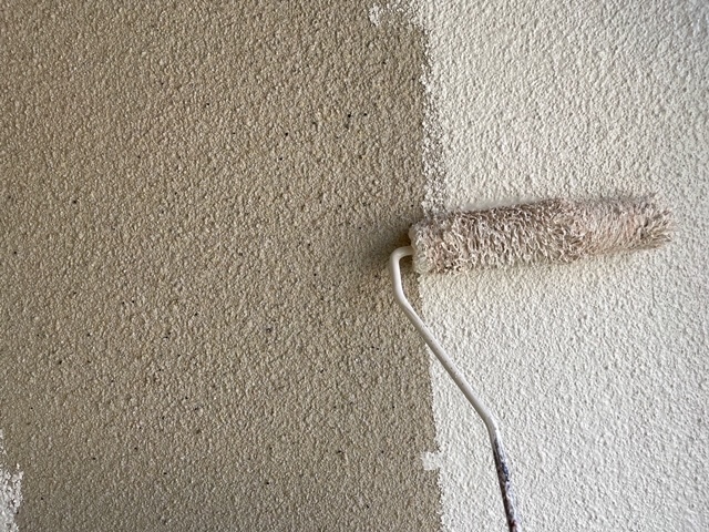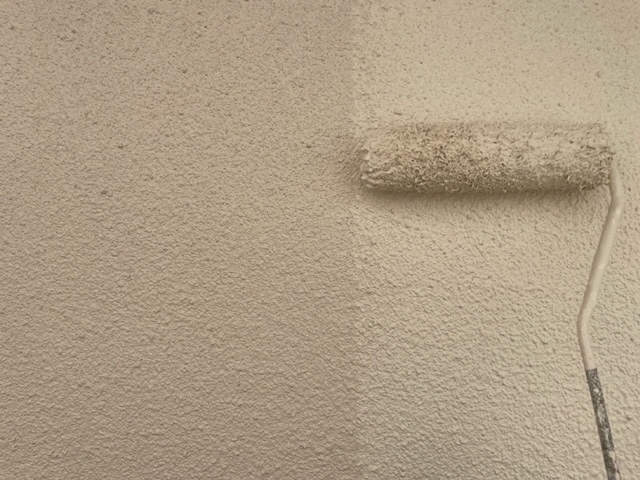 外壁塗装の様子です。中塗り、上塗りと進めております。特殊な旧塗膜だったので下処理をしっかり行ってから上塗り工程に進んでおります。またアップします。