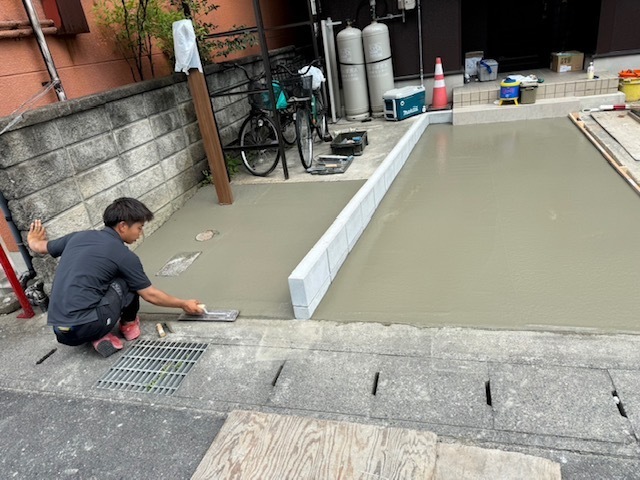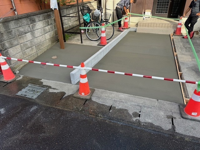 土間工事完了しました。天気も良く乾きも早かったので順調に進みました。今回は刷毛引きで仕上げております。残すところ型枠撤去と砂利目地とポスト、表札設置で完了です。あと半日もかからないと思います。Kさま邸もいよいよ完成です。またアップします。